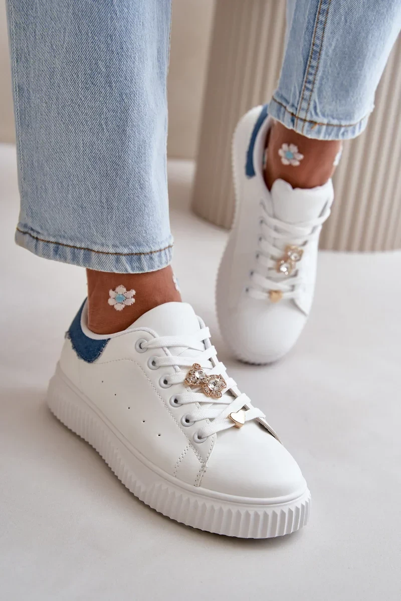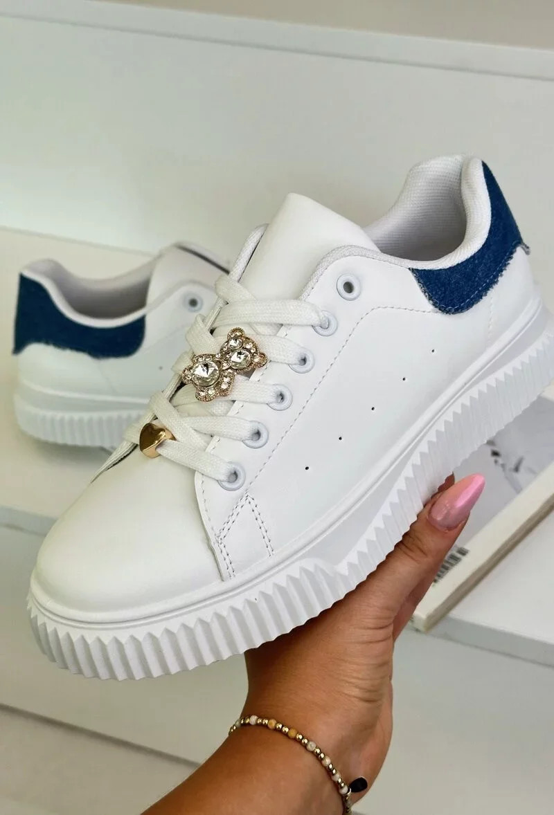 Osazené na platformě, tyto tenisky vynikají roztomilými připínáčky na tkaničkách, které jim dodávají výjimečné kouzlo. To ideální obuv pro každodenní stylizace, která spojuje módní vzhled s pohodlím nošení. Při výběru velikosti se prosím řiďte tabulkou velikostí.
