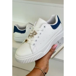 Nízké tenisky z eko kůže s odznaky bílo-modré Cillione