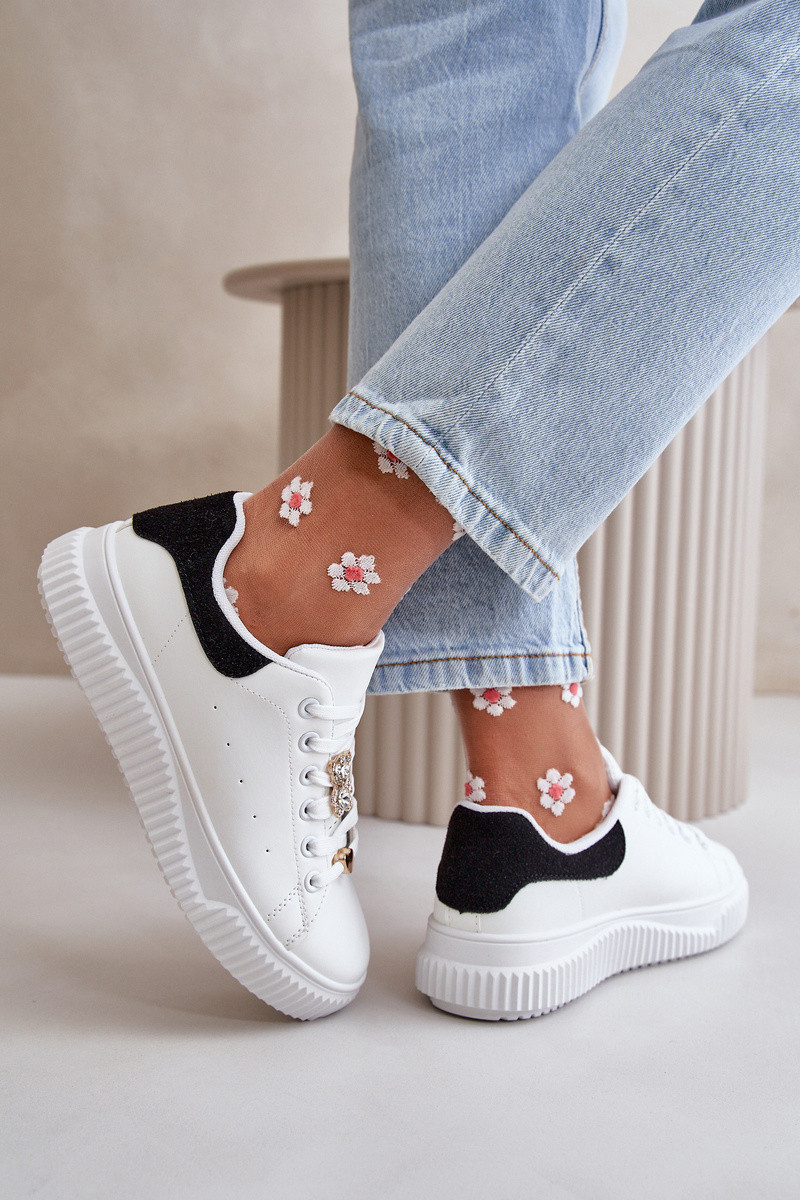Nízké dámské tenisky vyrobené z eko kůže jsou spojení stylu a pohodlí. Umístěné na platformě, tyto tenisky se vyznačují roztomilými přívěsky na tkaničkách, které jim dodávají jedinečný šarm. To jsou ideální boty pro každodenní styly, které spojují módní vzhled s pohodlím nošení. Při výběru velikosti se řiďte tabulkou velikostí.