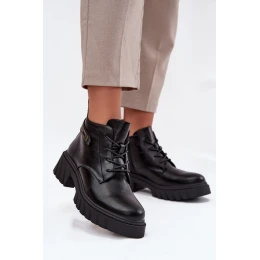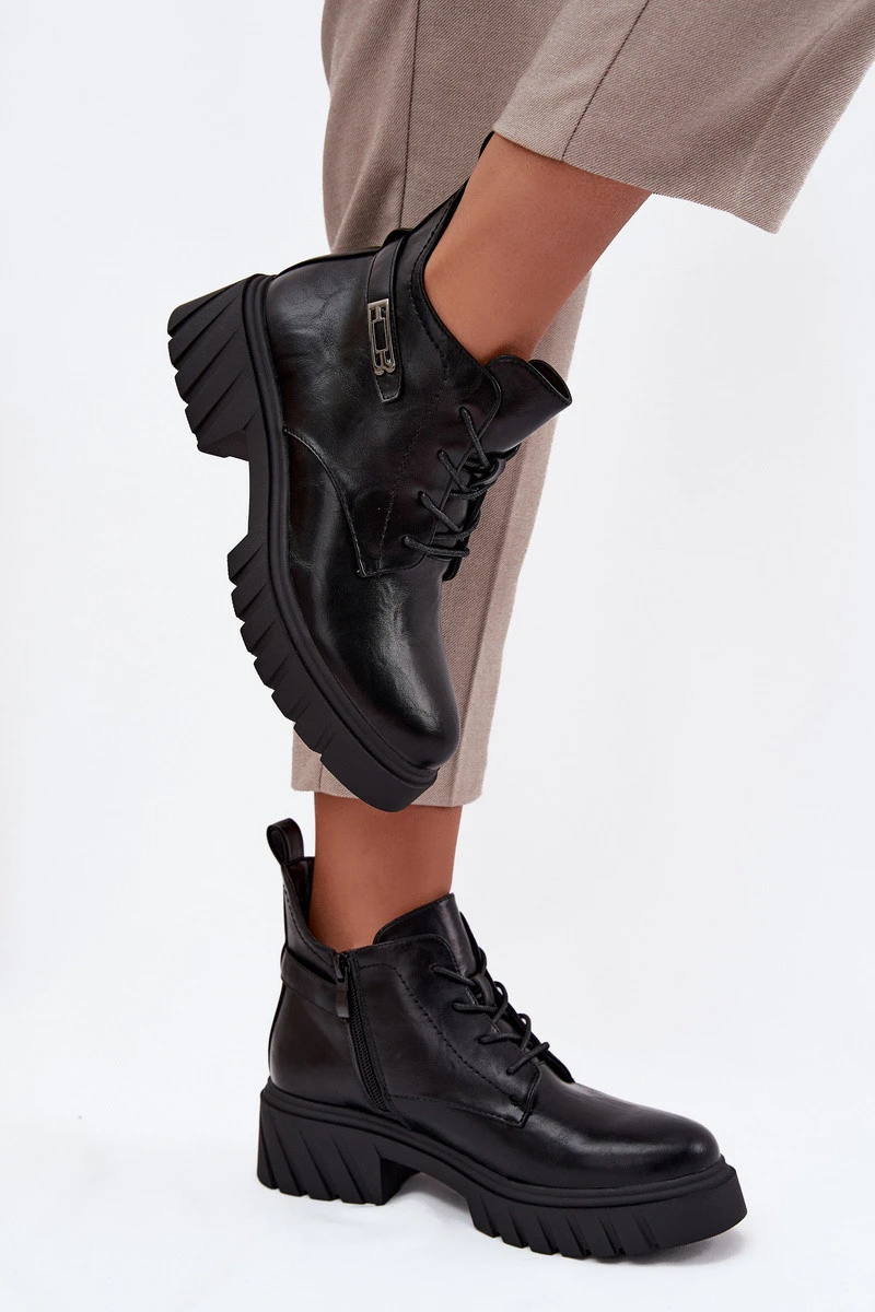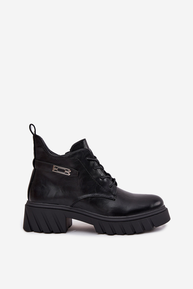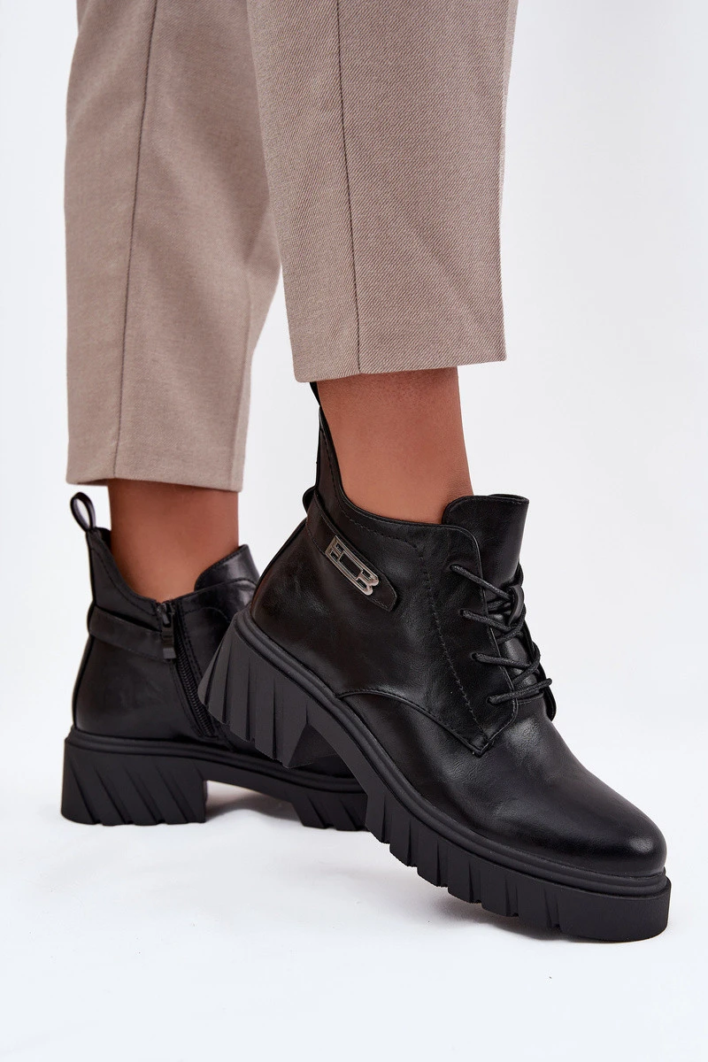 Nízké zateplené dámské kotníkové boty na klínku s ozdobným páskem Černé model 21708426 - Boto