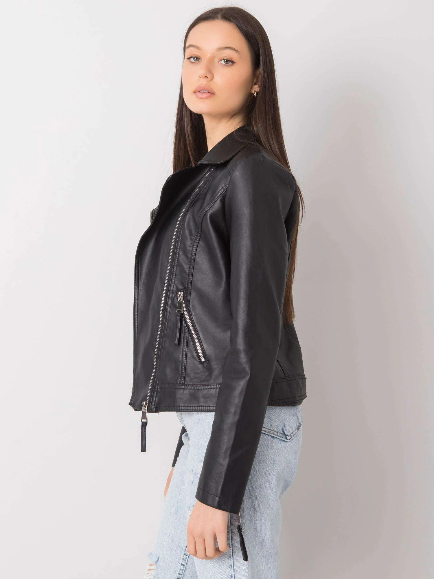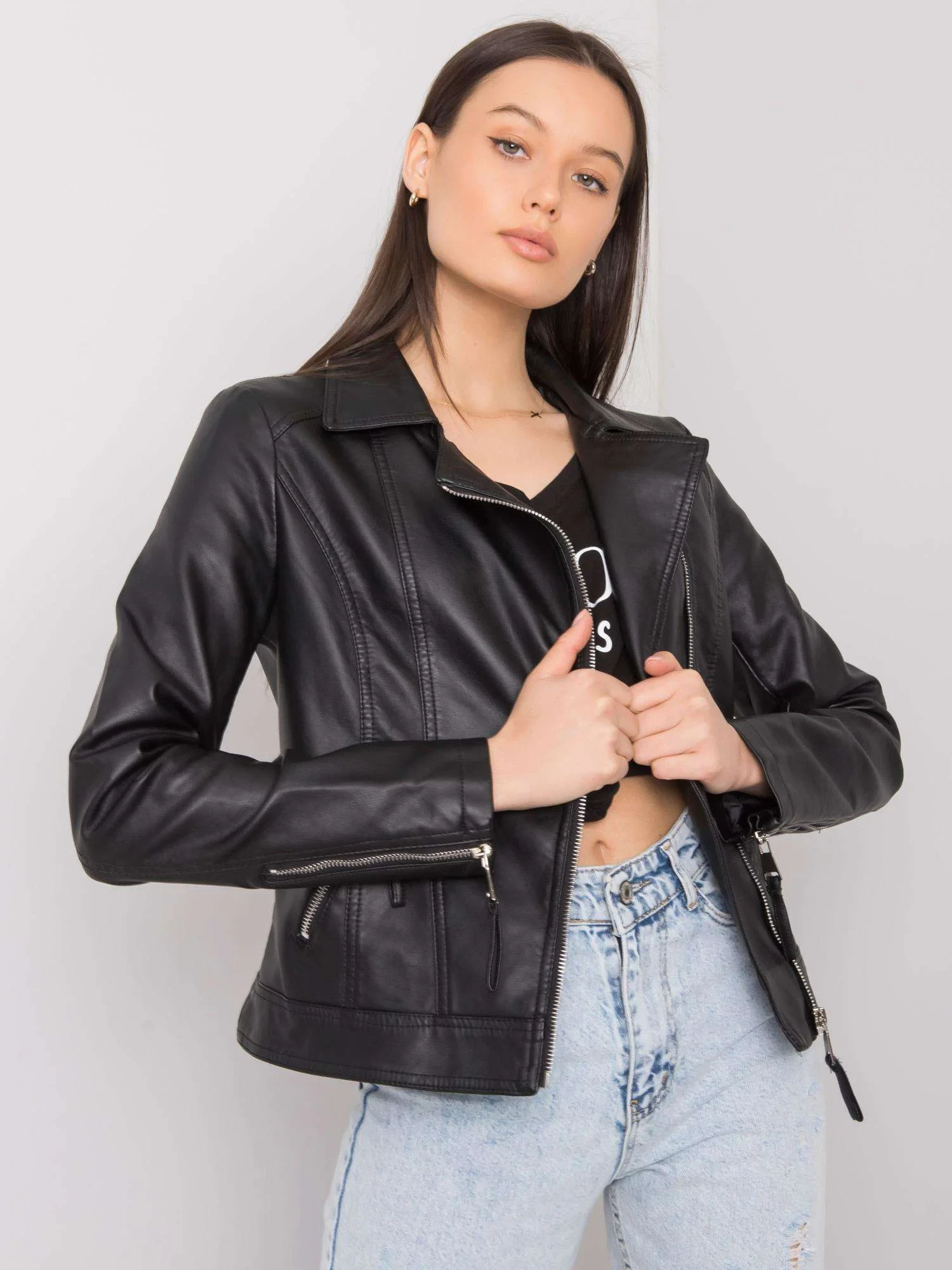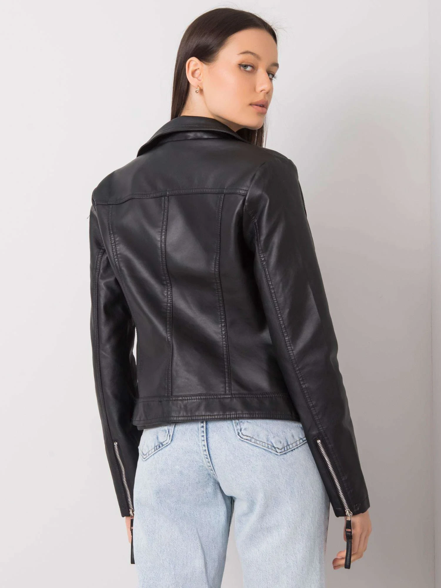 Černá dámská bunda z ekokůže.