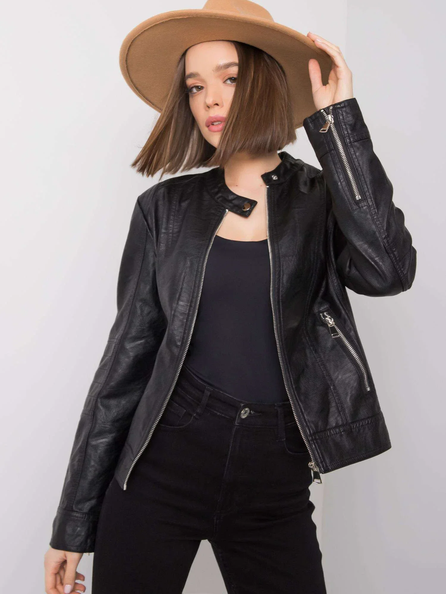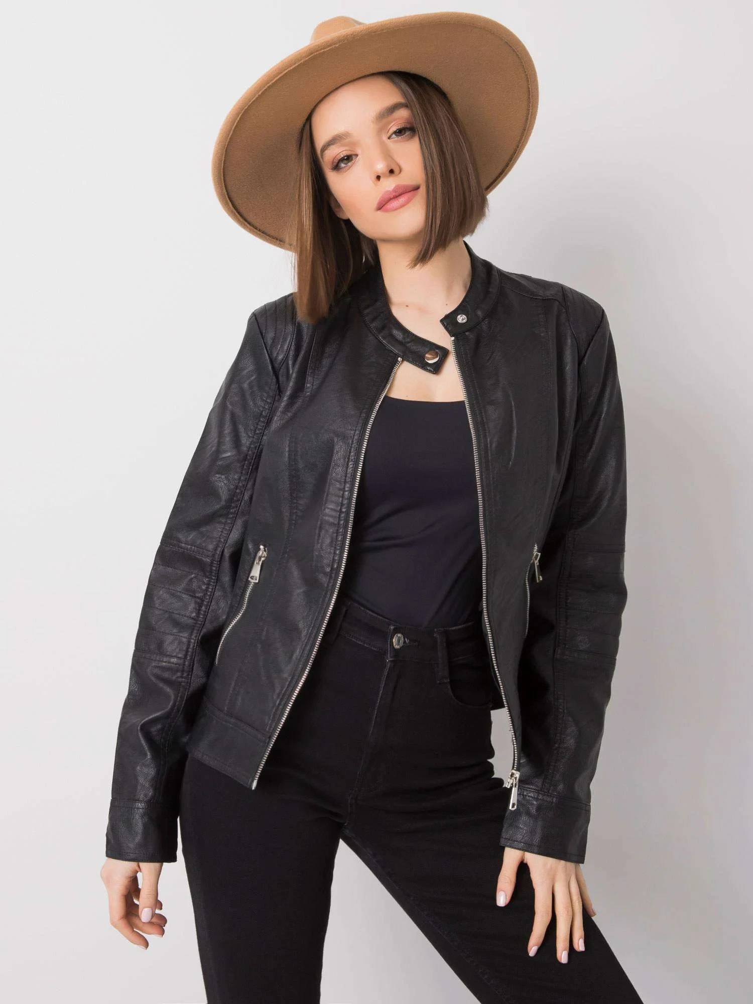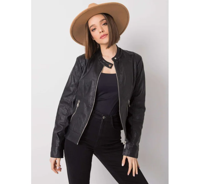 Černá motorkářská bunda .