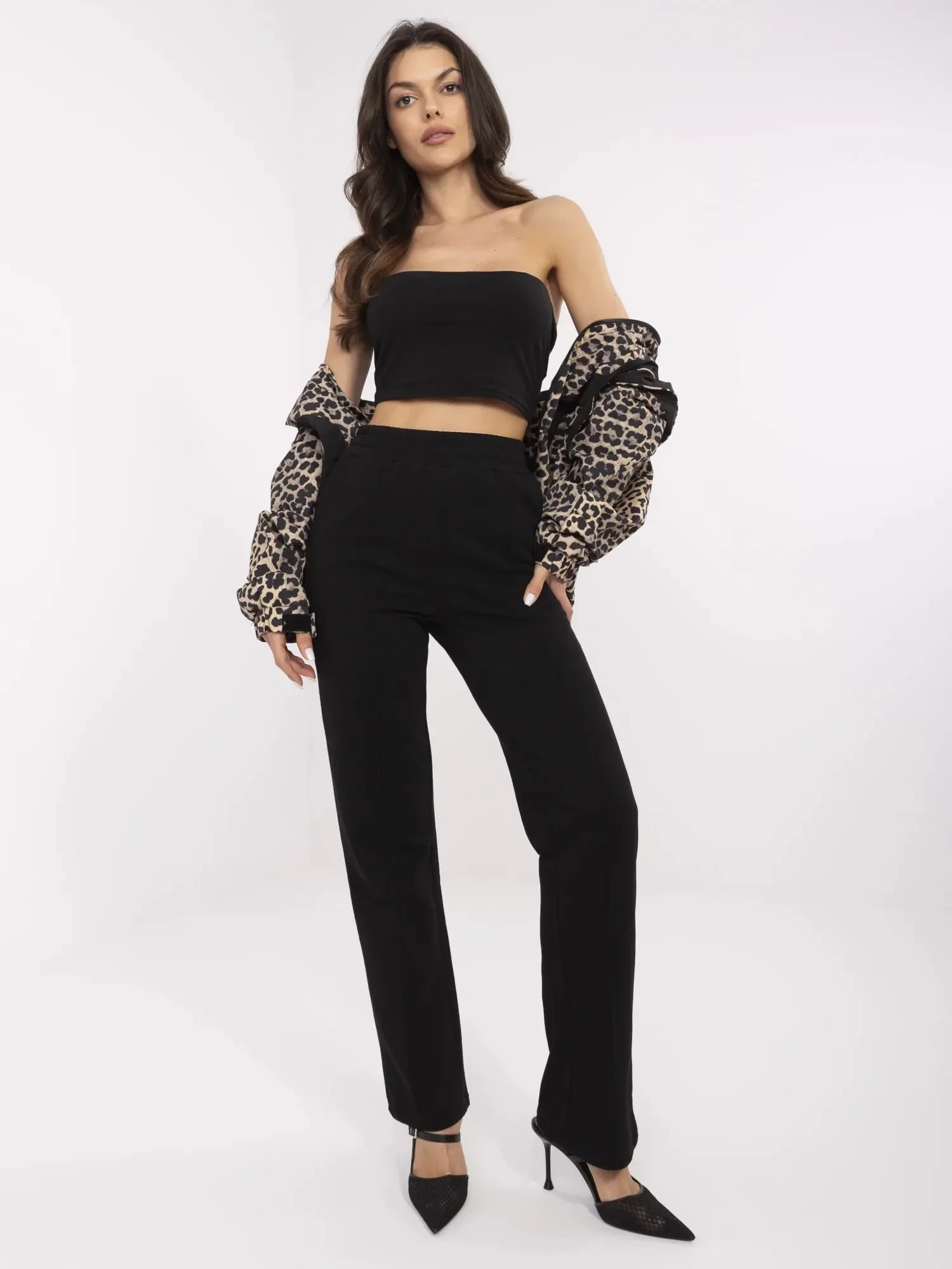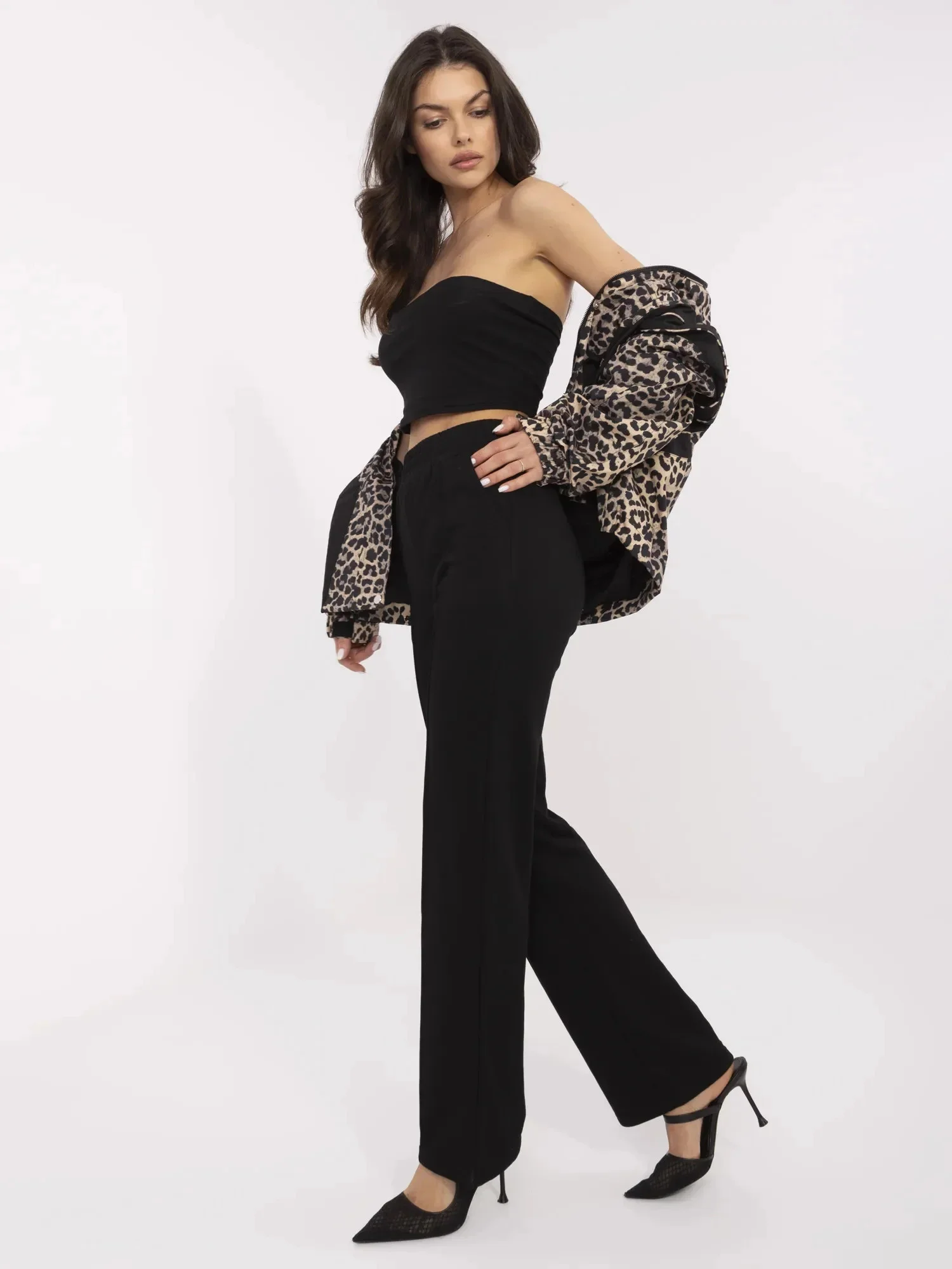 Má na sobě jednu velikost. míry modelky: výška 173 cm, poprsí 89 cm, pas 65 cm, boky 91 cm