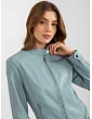 Světle modrá motorkářská bunda z ekokůže s kapsami .