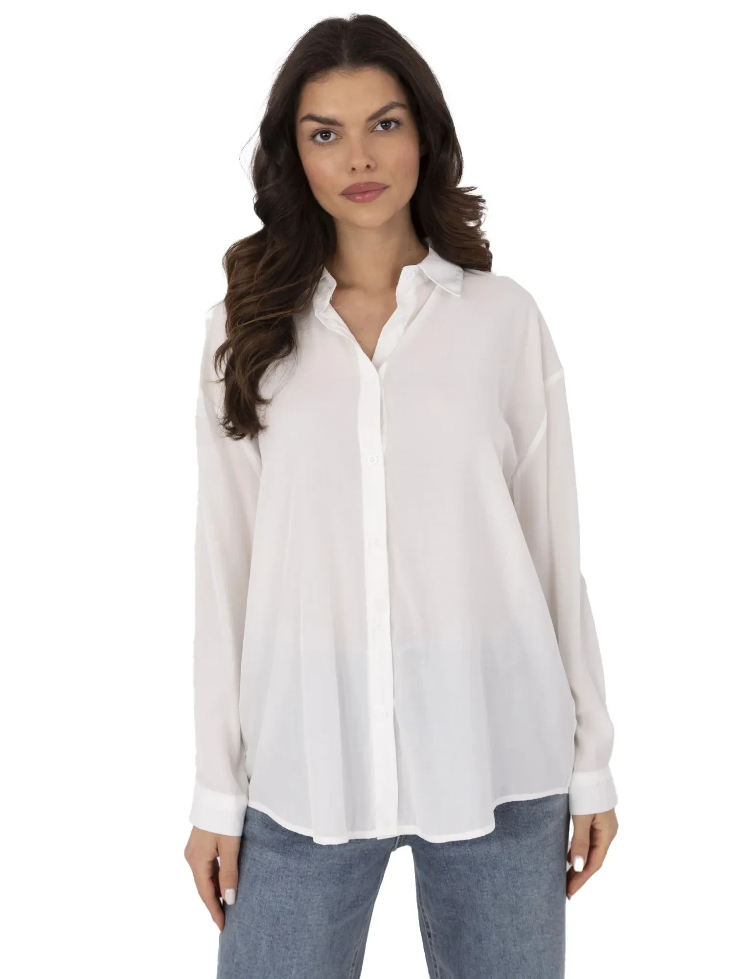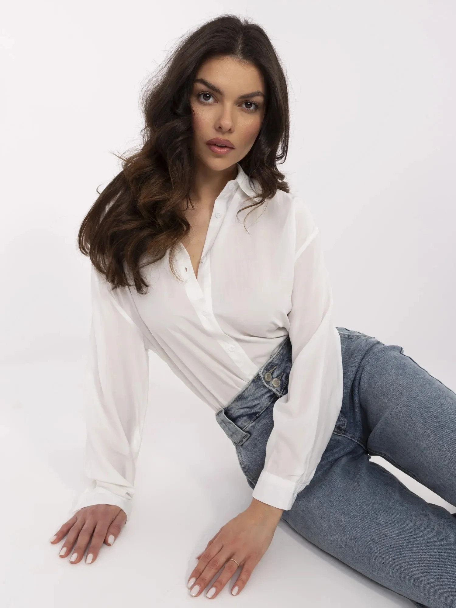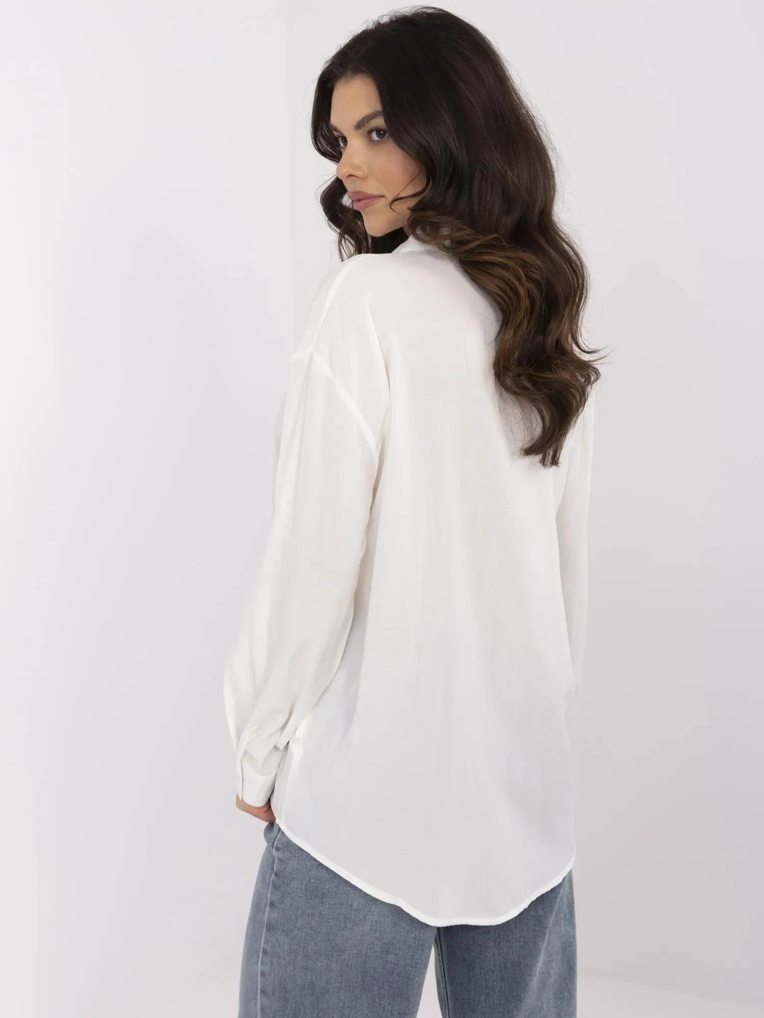 Wymiary koszuli w rozmiarze one size mierzone na płasko: szerokość pod pachami - 59 cm długość rękawa - 52 cm (od szwu), szerokość w biodrach - 60 cm, długość całkowita - 74 cm.
