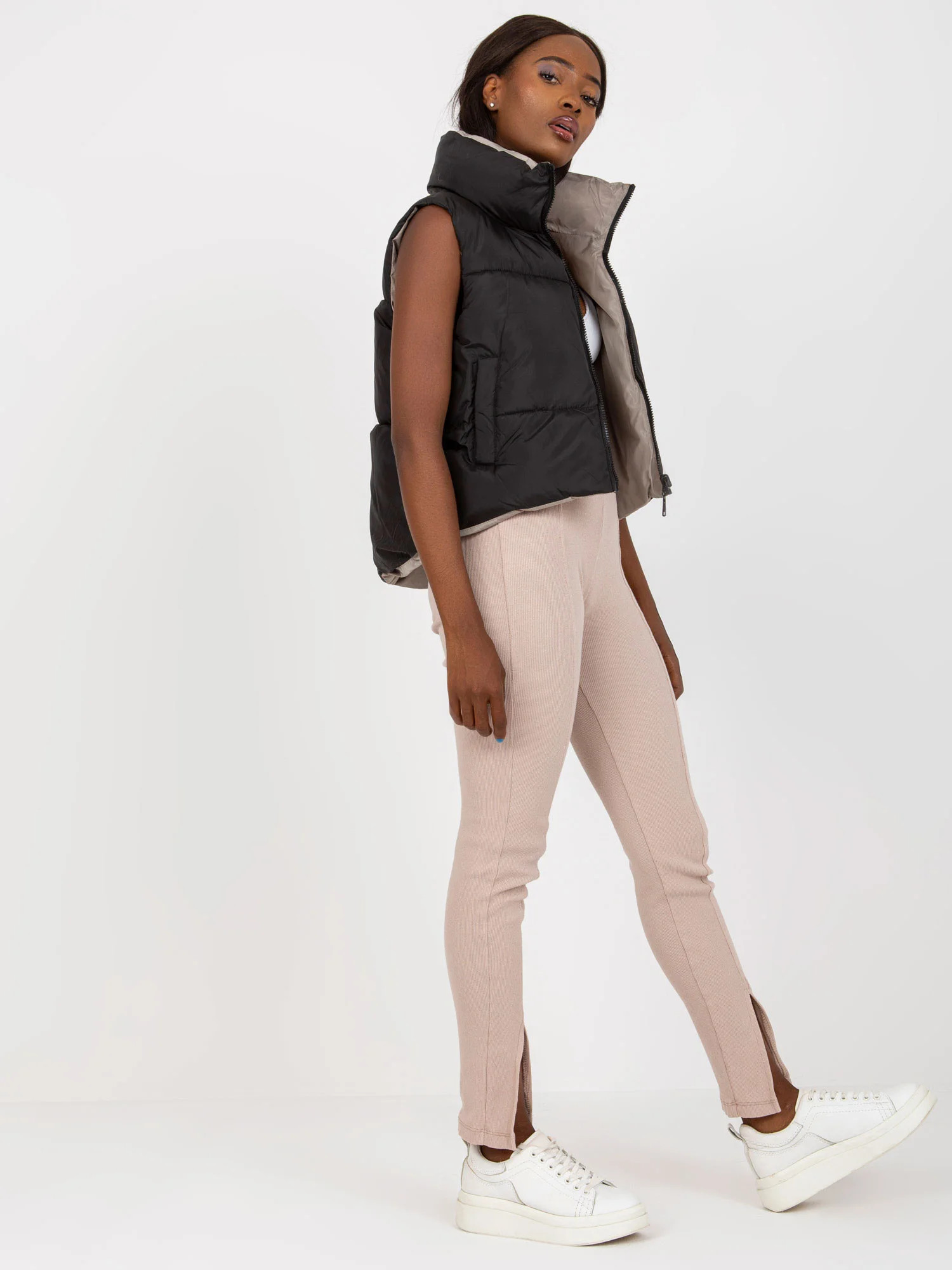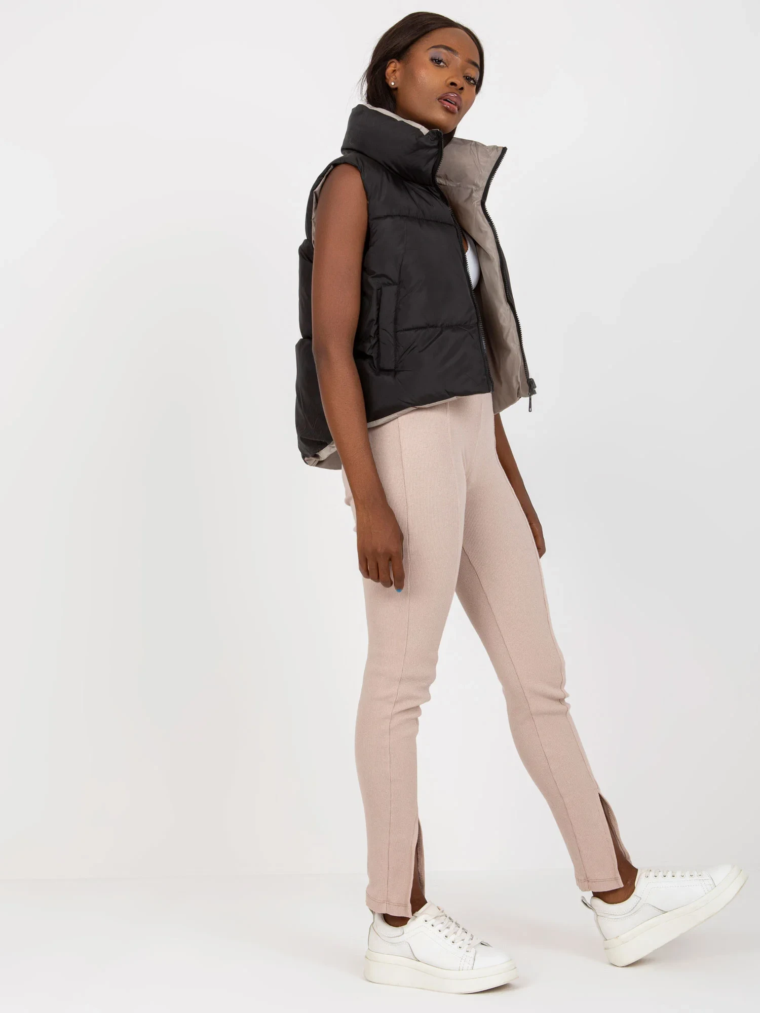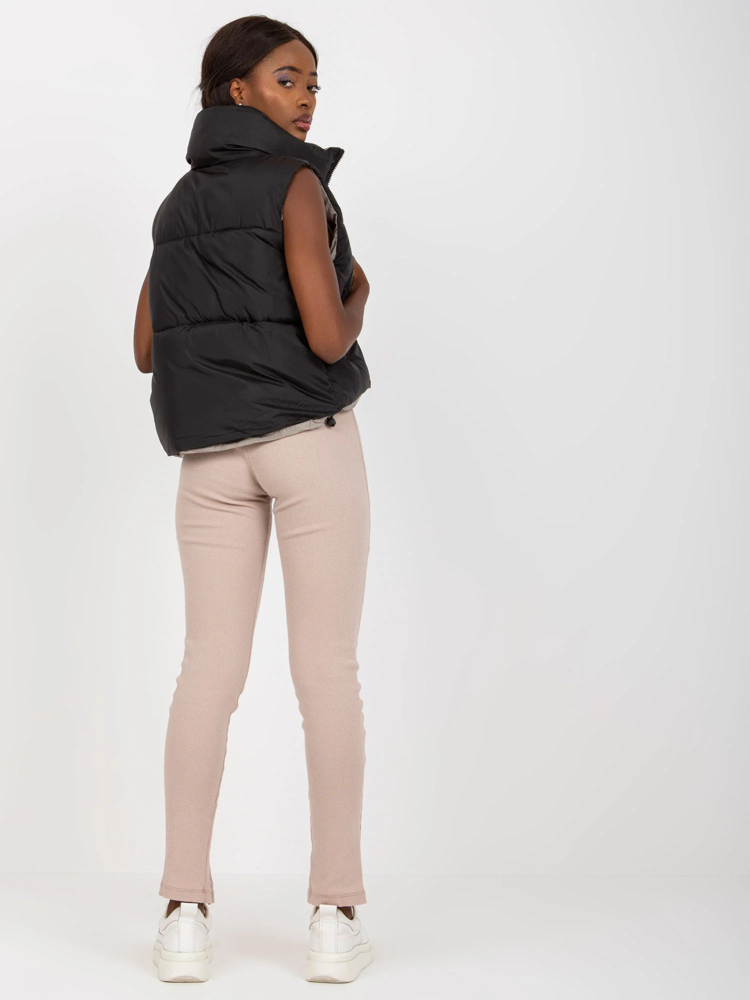 Černá oboustranná péřová vesta s prošíváním .