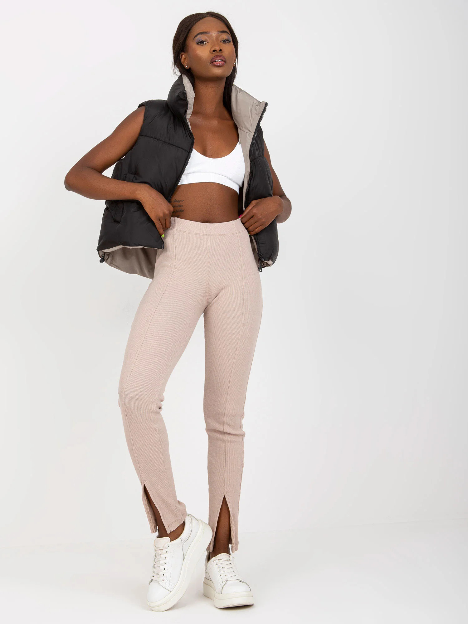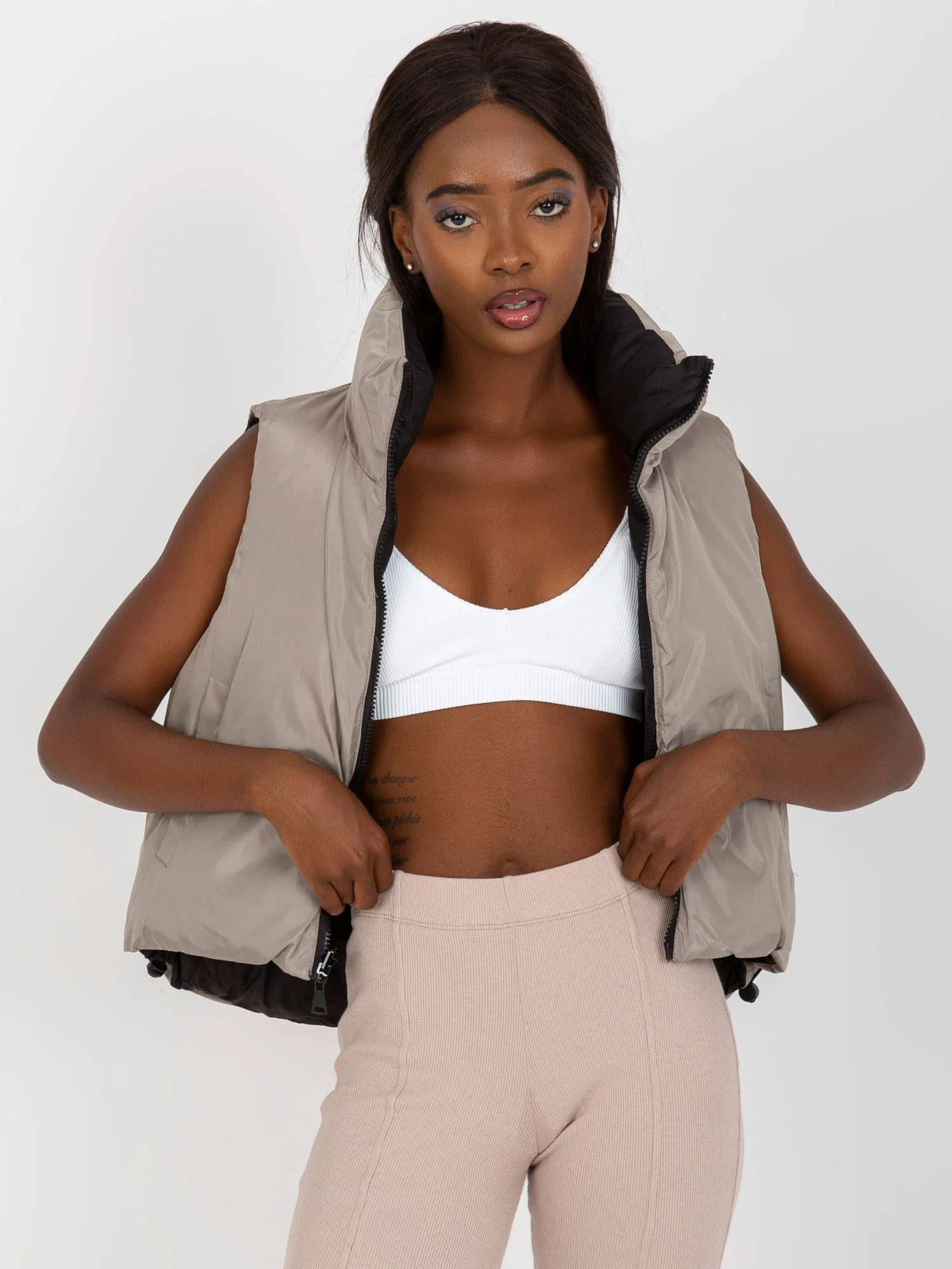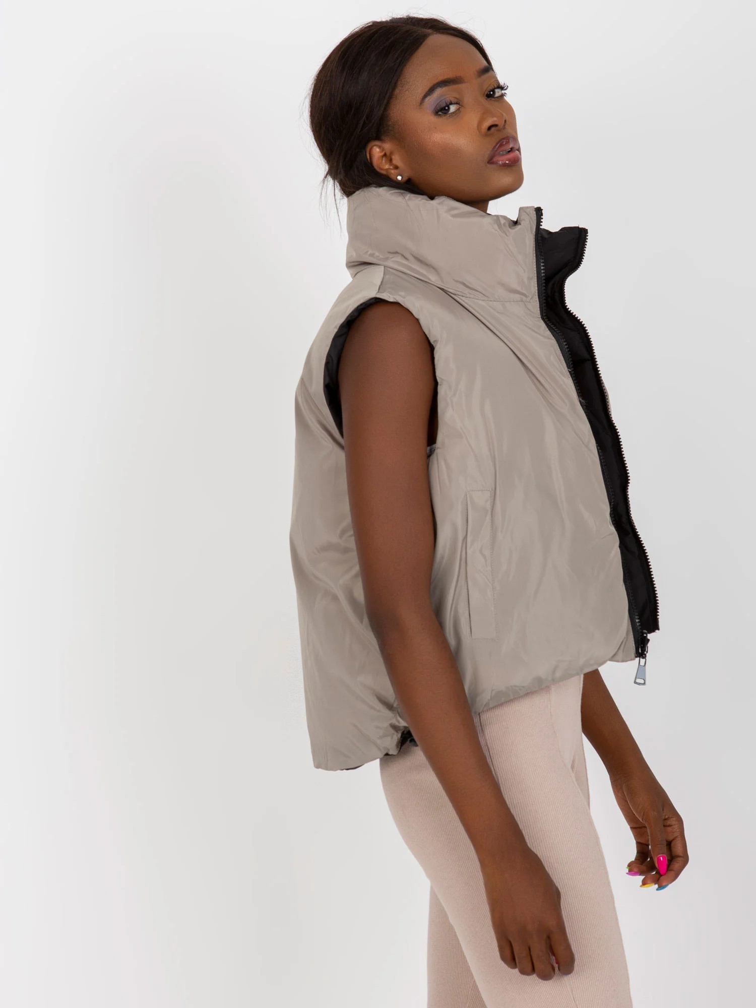 Černá oboustranná péřová vesta s prošíváním .