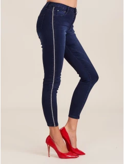 Tmavě modré džínové džíny s vysokým pasem tube topy .