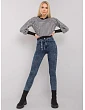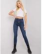 Tmavě modré úzké džíny s páskem.