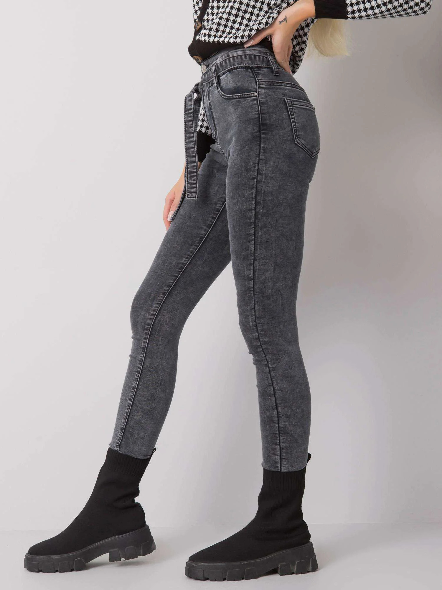 Šedé džíny slim fit střihu s páskem.