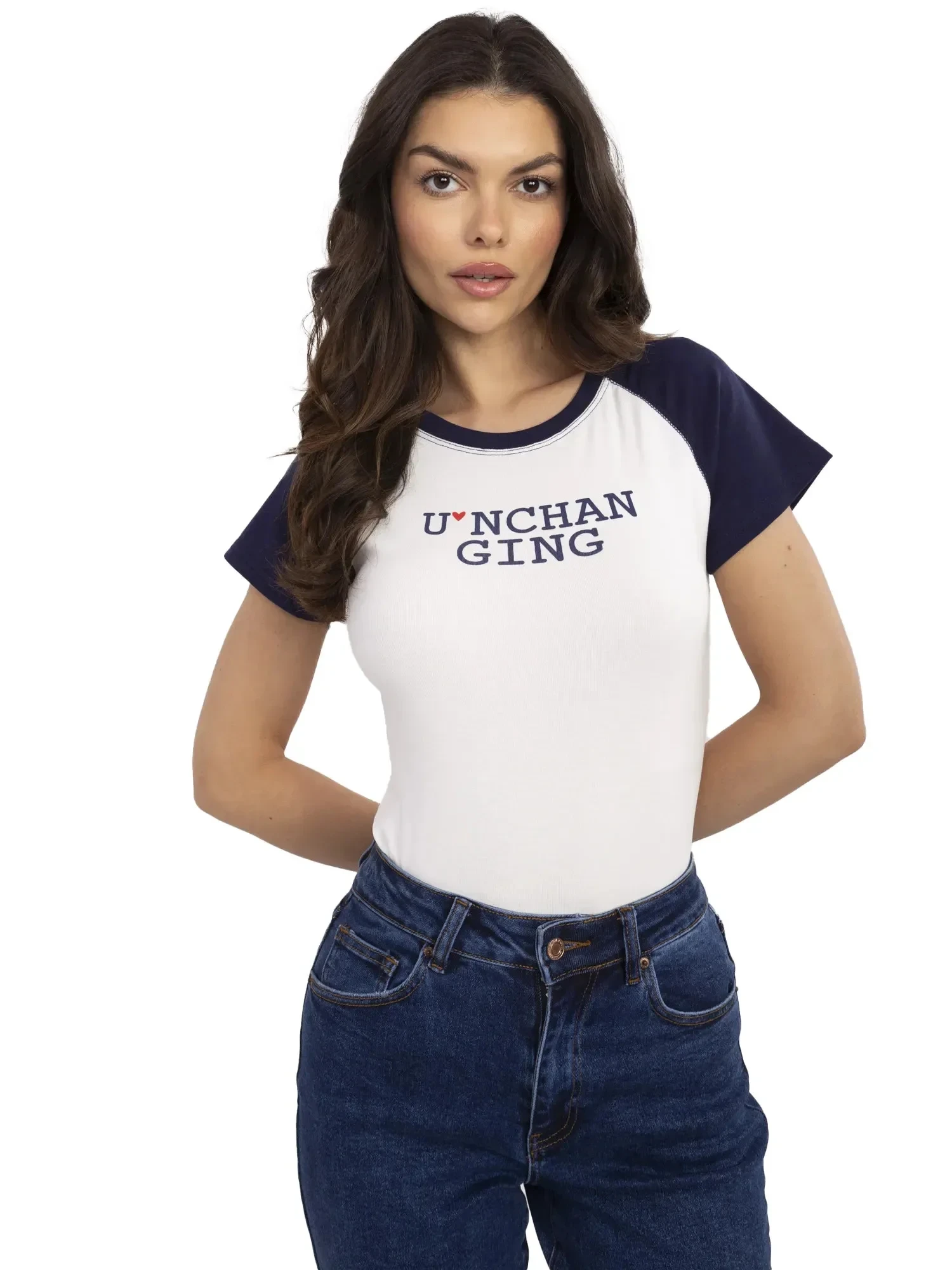 Rozměry trička jedné velikosti měřené na plocho: šířka v podpaží - 40 cm, délka rukávu - 20 cm (od švu), šířka v bocích - 41 cm, celková délka - 56 cm (strečový materiál).