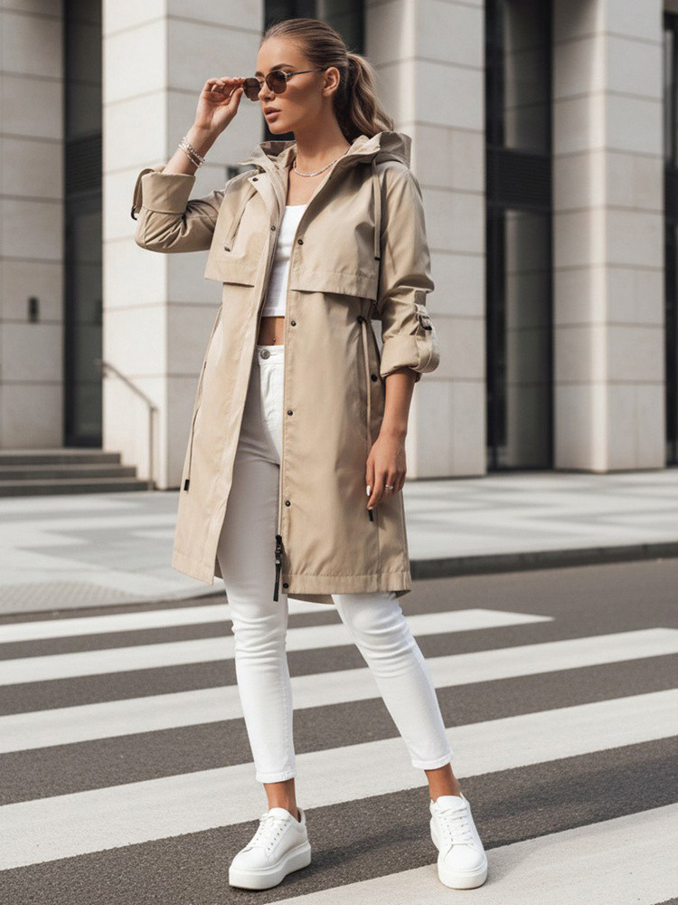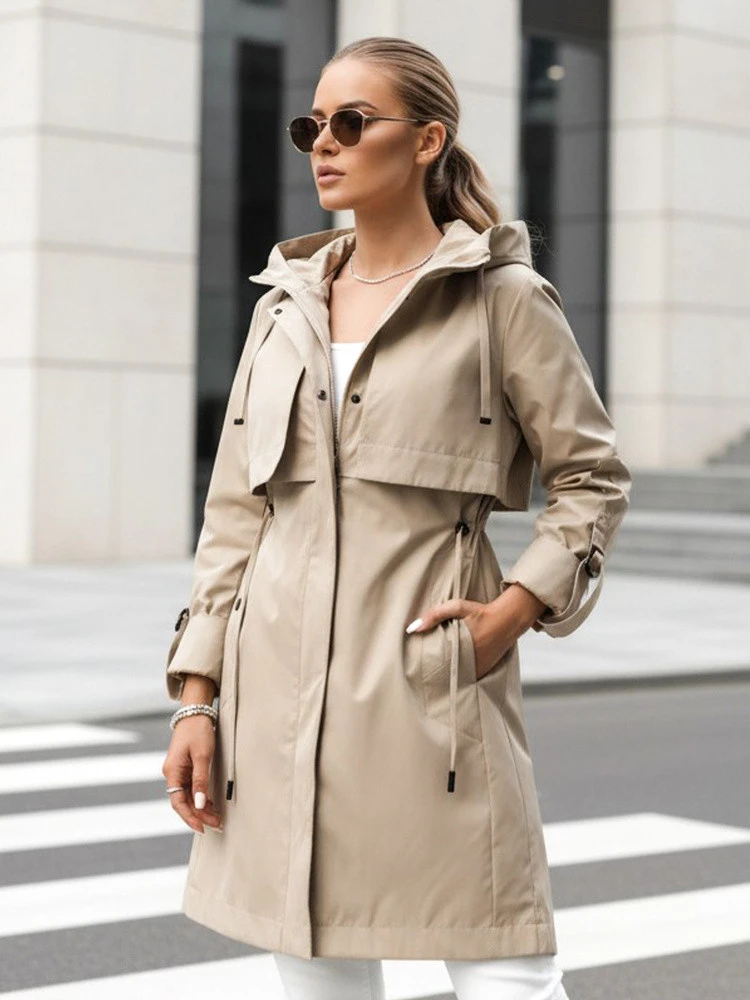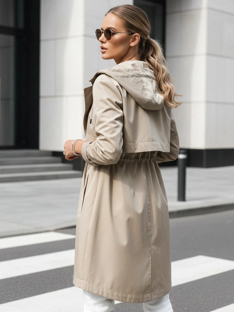 Tato lehká dámská bunda je určena pro každodenní nošení v přechodném období. Prodloužený střih s nastavitelným pasem umožňuje přizpůsobit siluetu vašim individuálním preferencím. Kapuce zvyšuje funkčnost při proměnlivém počasí. Jednoduchý design usnadňuje vytváření městských stylizací.