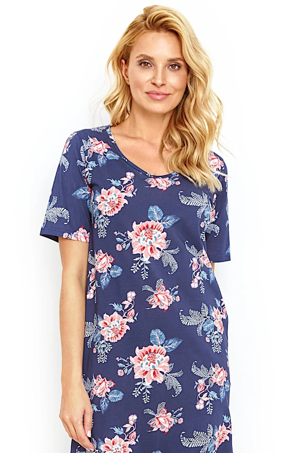 Dámská noční košile 2879 Ellie Taro - je vyrobená z velmi kvalitní bavlny - tmavě modrá barva s potiskem - s krátkými rukávy - délka nad kolenaMateriálové složení: 100% bavlna