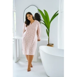 Koszula nocna NORI 3469 marki TARO to idealna propozycja dla kobiet ceniących wygodę, romantyczne wzornictwo oraz praktyczne rozwiązania. Uszyta z wysokogatunkowej, 100% bawełny, gwarantuje miękkość, przewiewność i komfort przez całą noc. Długość do kolan, długi rękaw oraz rozpinany dekolt na napy sprawiają, że model jest również doskonały dla mam karmiących. Subtelny print w serduszka nadaje całości dziewczęcego uroku, a luźny krój zapewnia pełną swobodę ruchów.