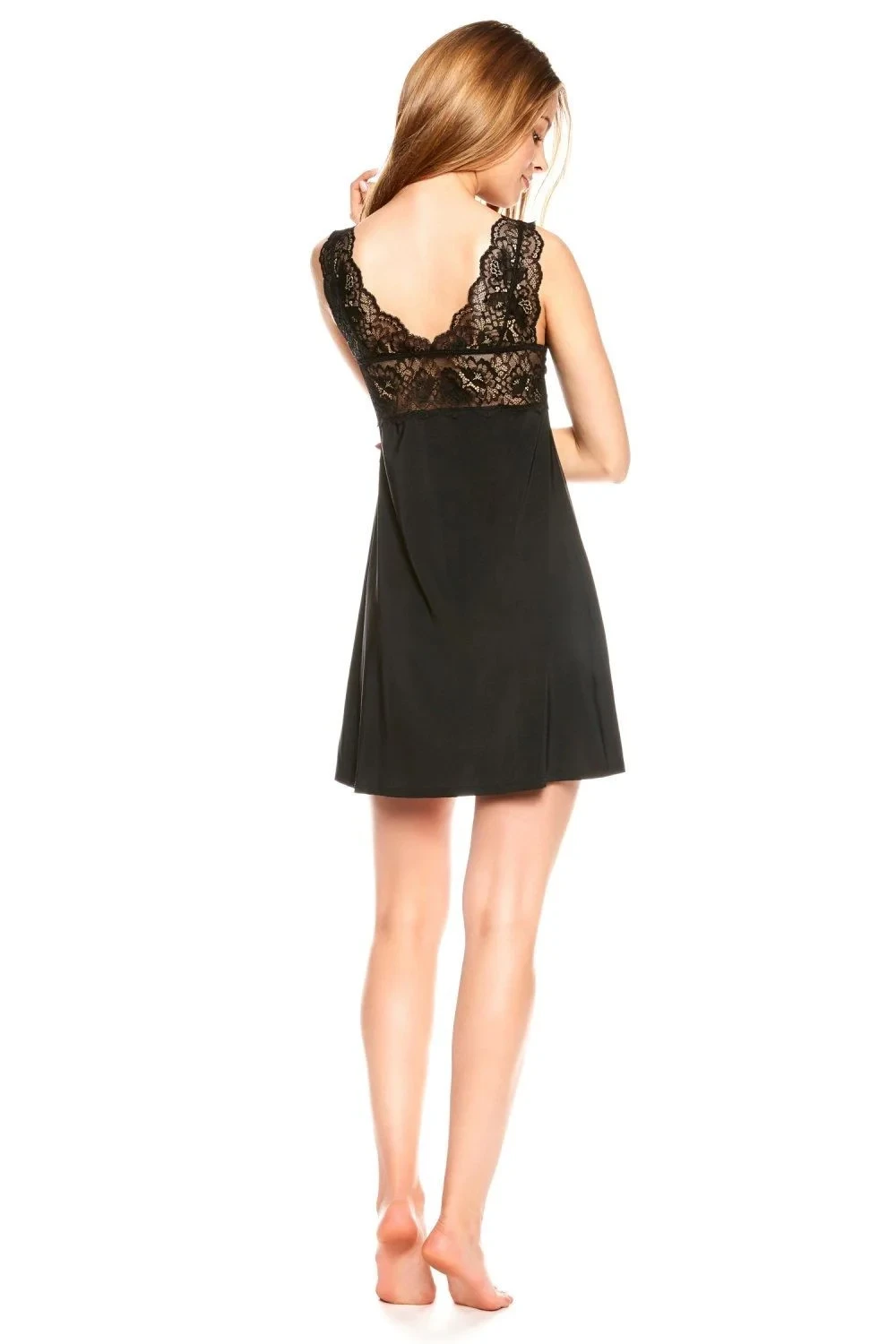 Noční košile 36120 Lilly HENDERSON - černá barva - z vysoce kvalitního materiálu - široká krajková ramínka - výstřih a pod prsy ozdobená krajkou s květinovým motivem - košíčky bez kostic a jsou podšité lehce vyztuženou pěnou - mezi košíčky bižuterieMateriálové složení: 72% polyamid + 28% elastan
