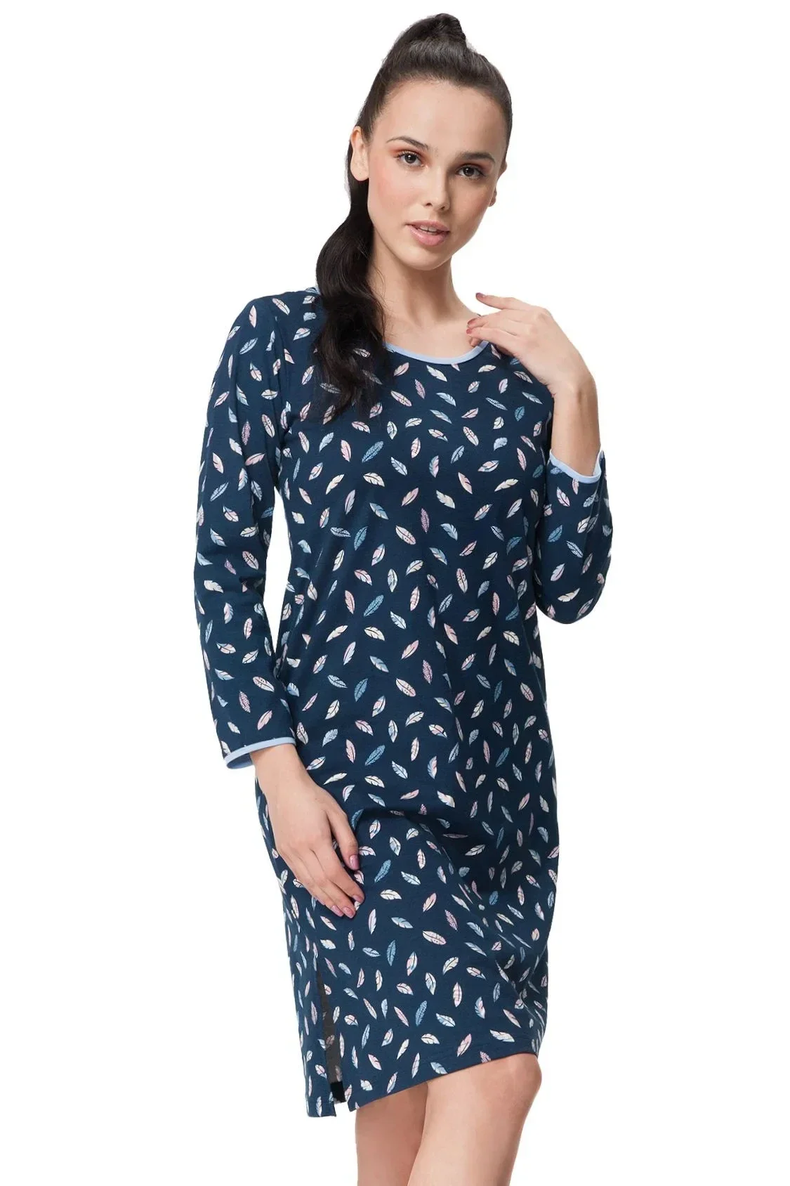 Dámská noční košile 39 Luna - vyrobena z kvalitní bavlny příjemné na dotek - modrá barva se vzorem peří - kulatý výstřih - krátké rukávy - délka nad kolenaMateriálové složení: 100% bavlna