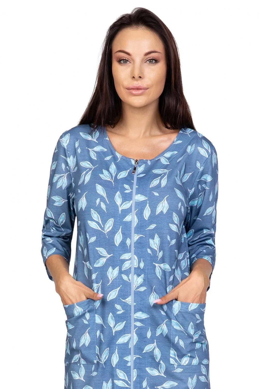 Dámská noční košile 409 Regina - je vyrobená z velmi kvalitní bavlny - s dlouhými rukávy - vzorovaná látka - zapínání na zip
