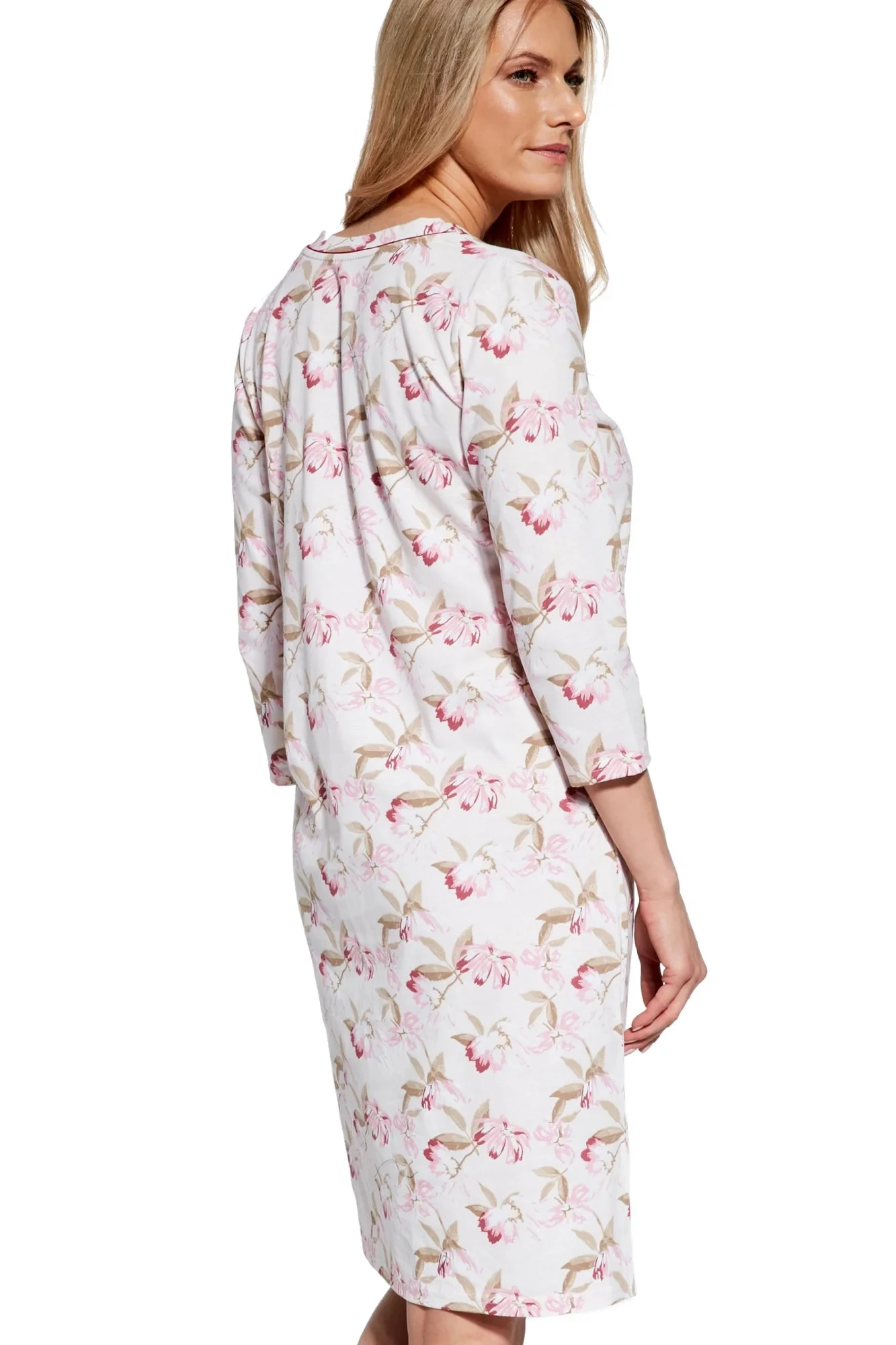 Noční košile 483/361 Adele 2 plus CORNETTE - růžová barva - vyrobeno z kvalitní bavlny - květinový vzor - výstřih do V - tříčtvrteční rukávy - délka nad kolenaMateriálové složení: 100% bavlna