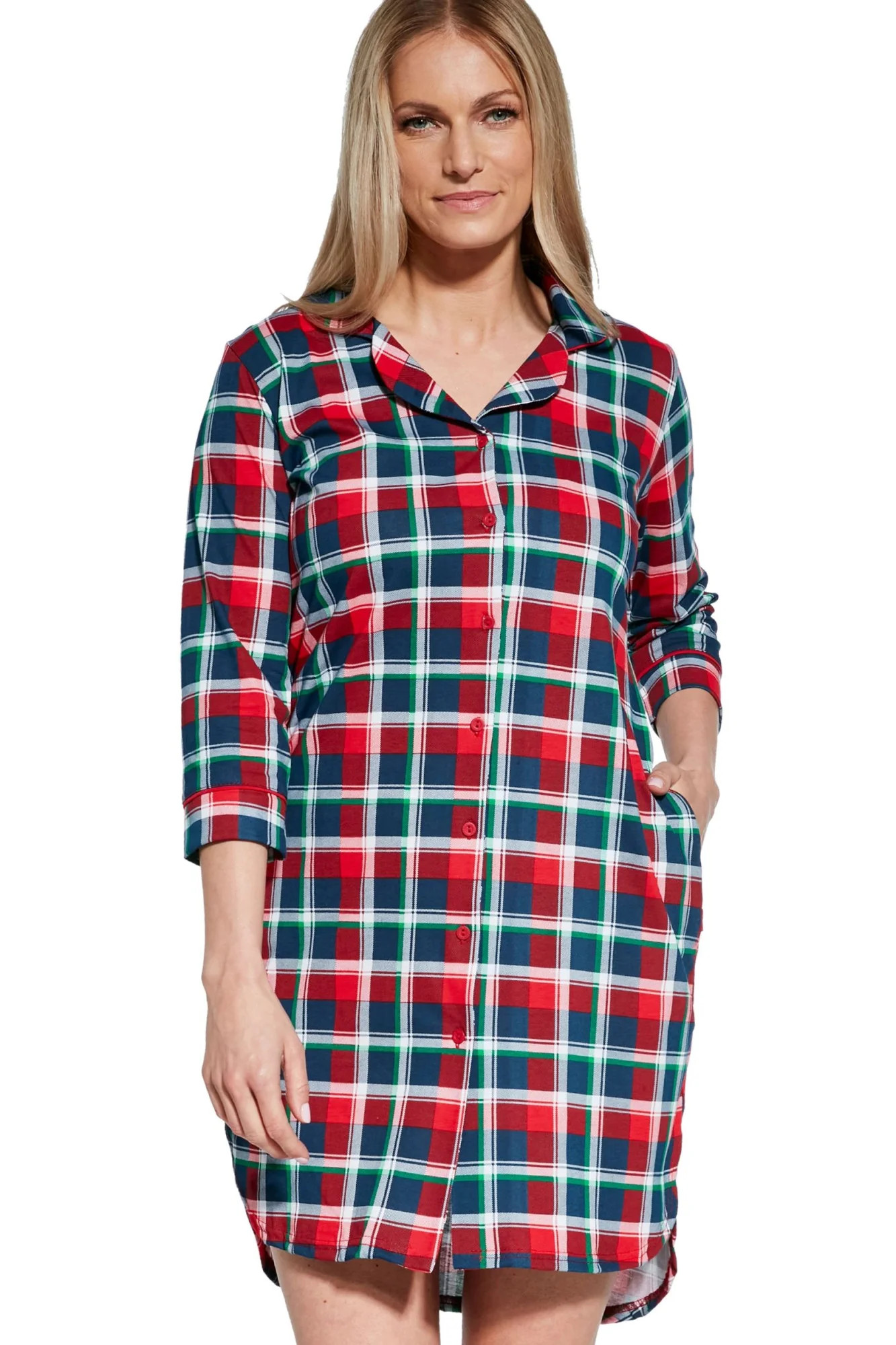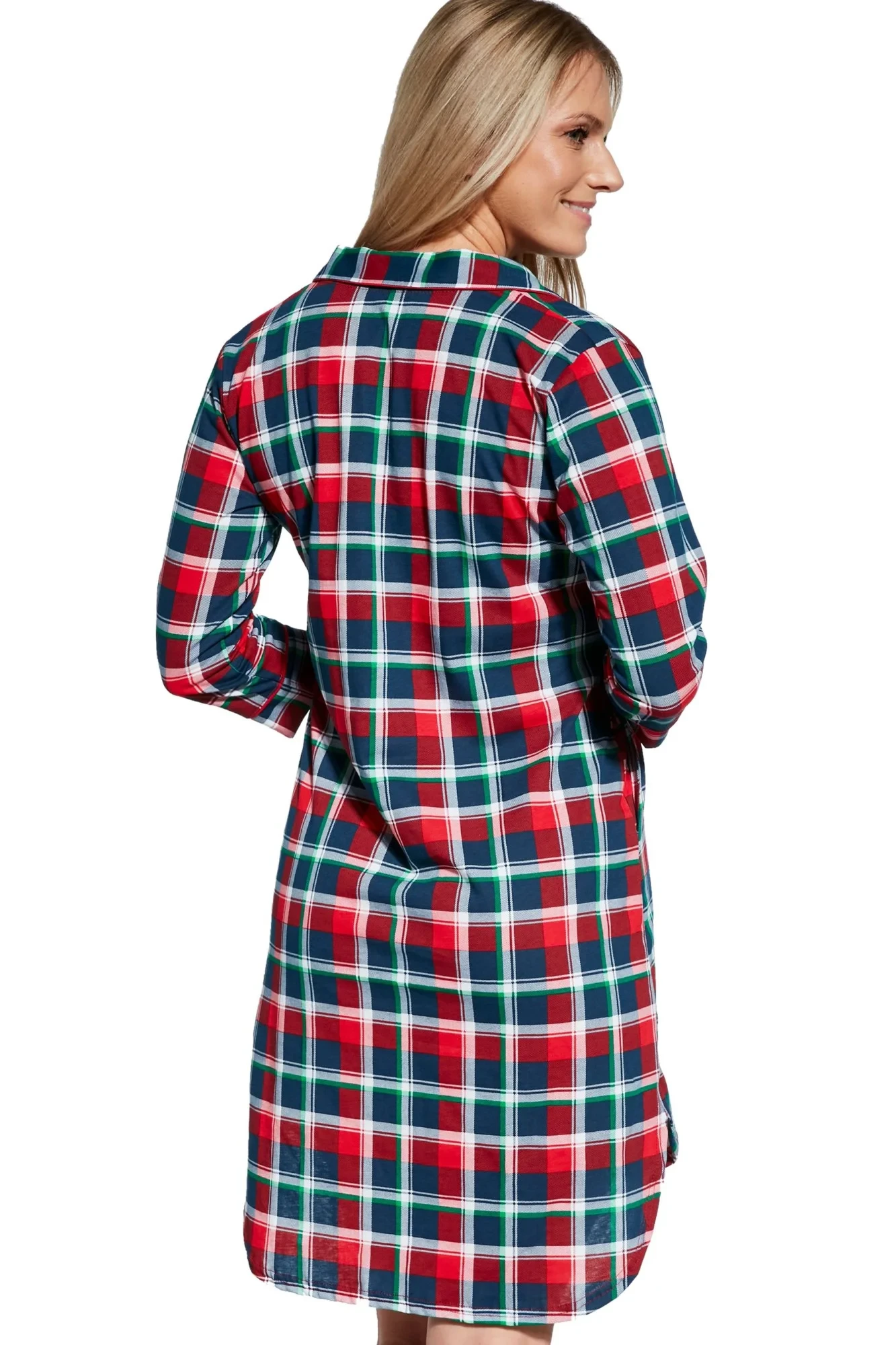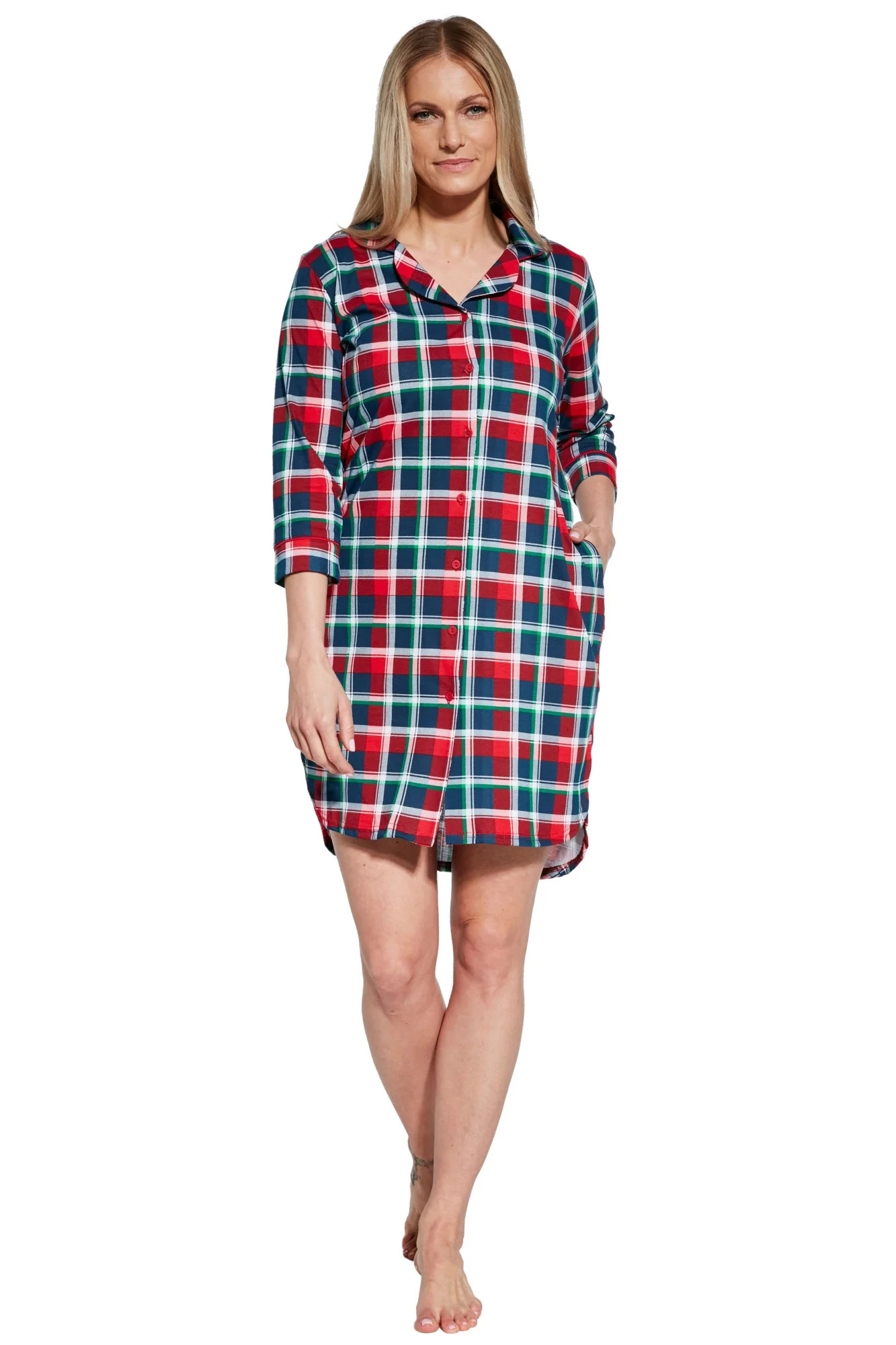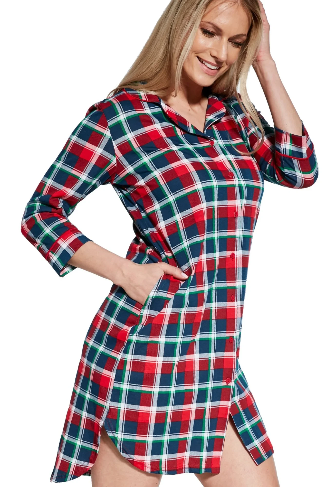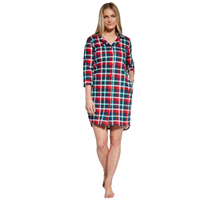 Noční košile 484/368 Britney CORNETTE - vyrobeno z kvalitní vzorované bavlny - dlouhé rukávy - zapínání na knoflíky - délka nad kolena