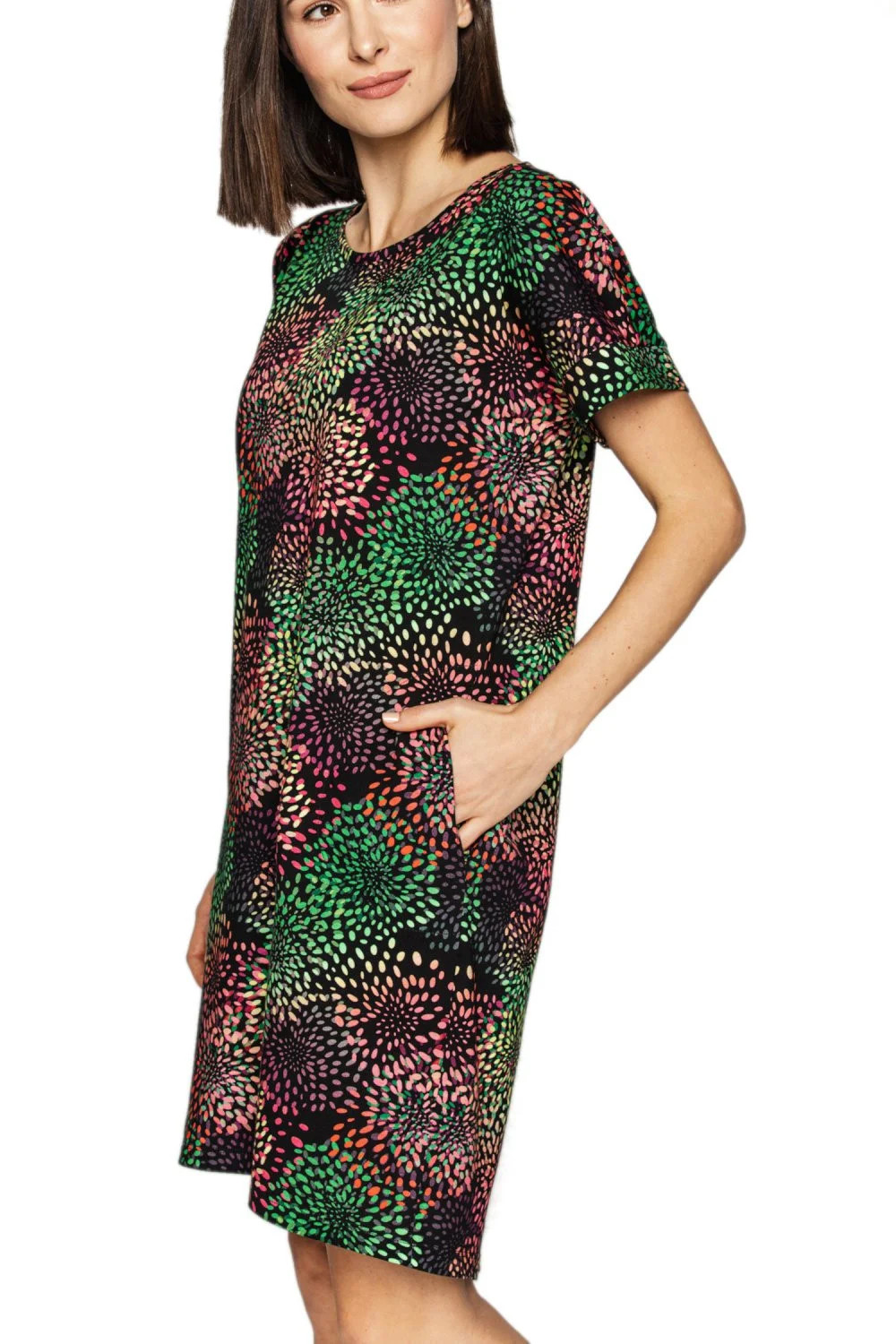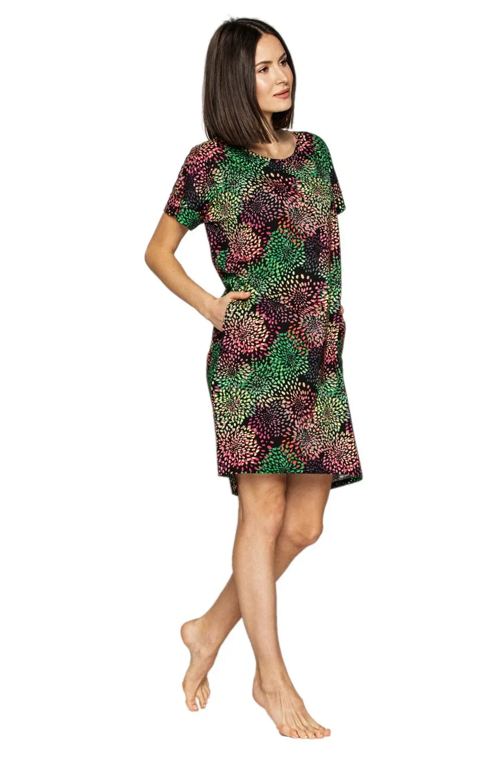 Dámská noční košile 879 CANA - úžasně pohodlná košile s krásným vzorem - s kulatým výstřihem a tříčtvrtečními rukávy - délka ke kolenůmMateriálové složení: 100% bavlna