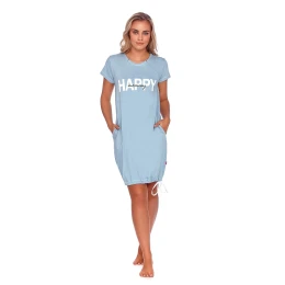 Dámská noční košilka 9504 light blue Doctornap - světle modrá barva - z vysoce jakostní bavlny - s krátkými rukávy - zdobená potiskem na přední straně - na bocích kapsy - ideální pro těhotné a kojící ženy - hypoalergenní vlastnosti - certifikát OEKO-TEX Standard 100
