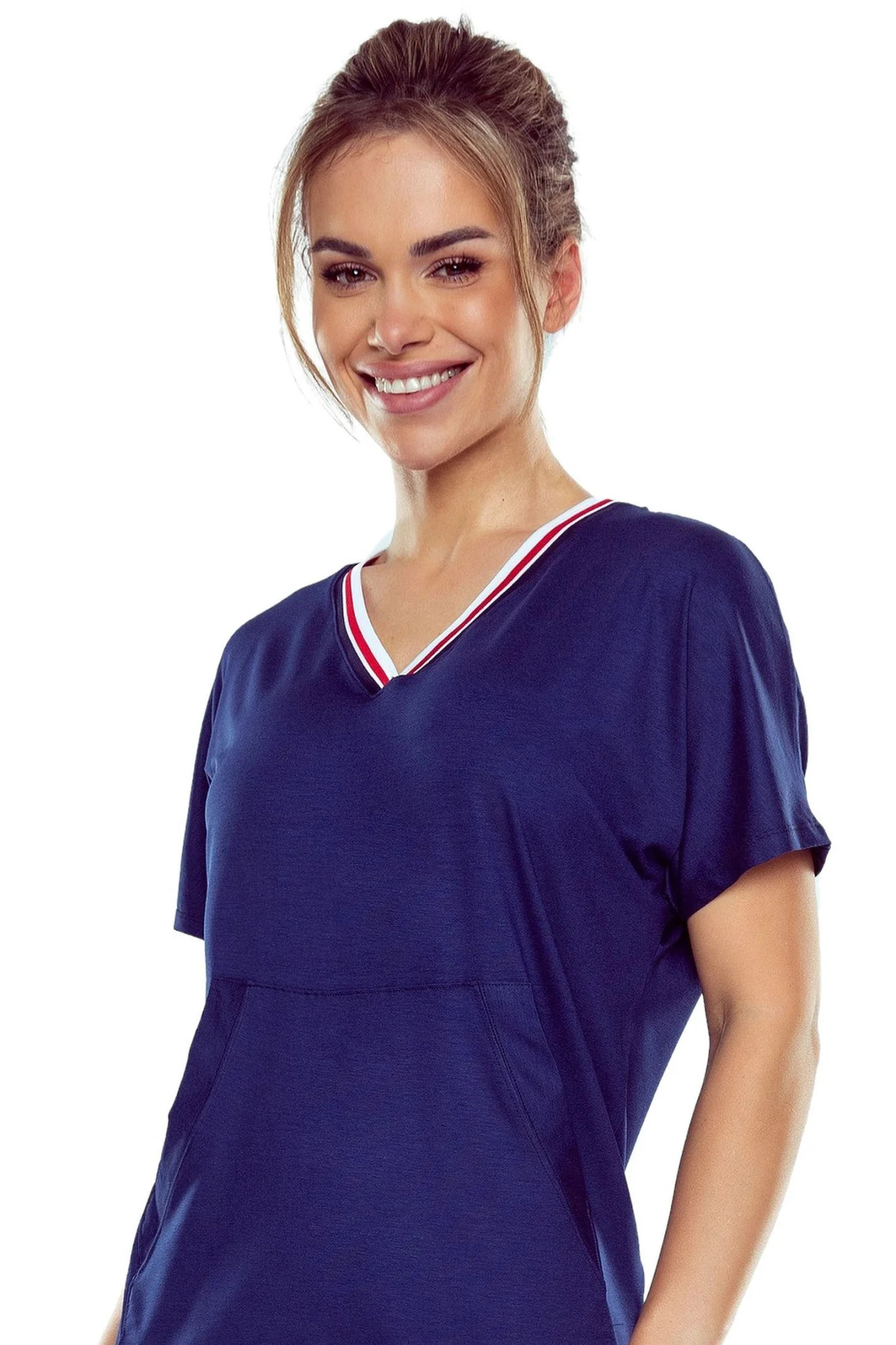 Noční košile Fleur blue ELDAR - tmavě modrá barva - z vysoce kvalitní bavlny - krátké rukávy - výstřih s barevným stahujícím lemem - kapsy na bocích