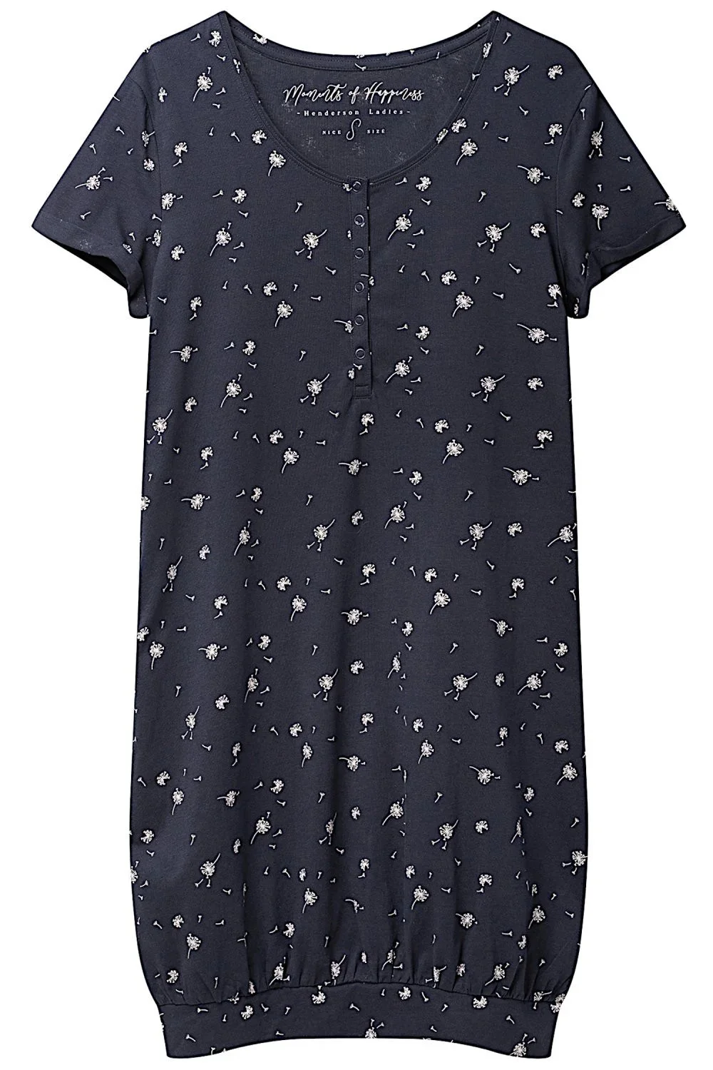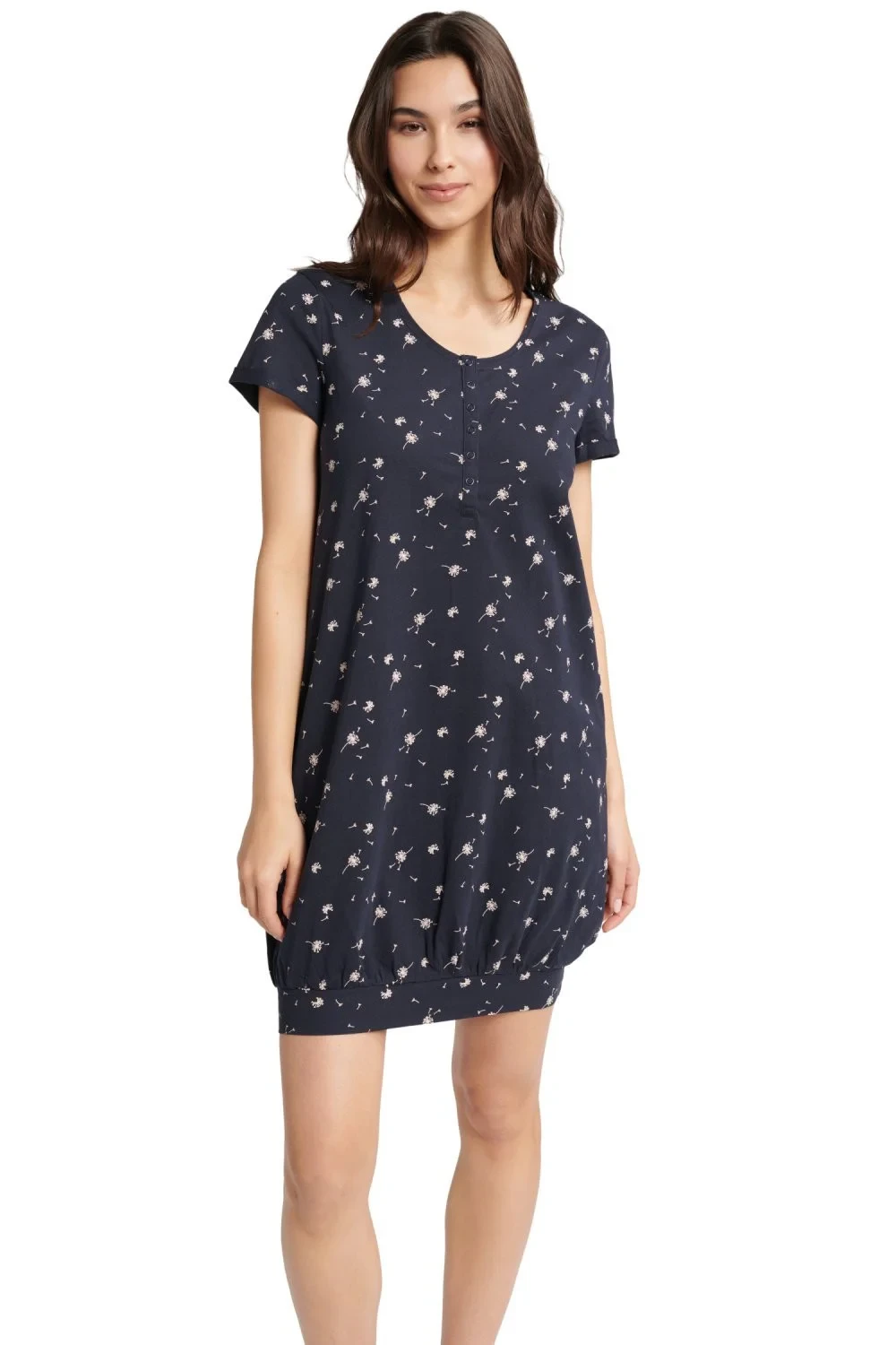 Dámská noční košile 40638 Blow Henderson - vyrobené z velmi kvalitní a příjemné bavlny - tmavě modrá barva - krátké rukávy - s potiskem - zapínání na knoflíky