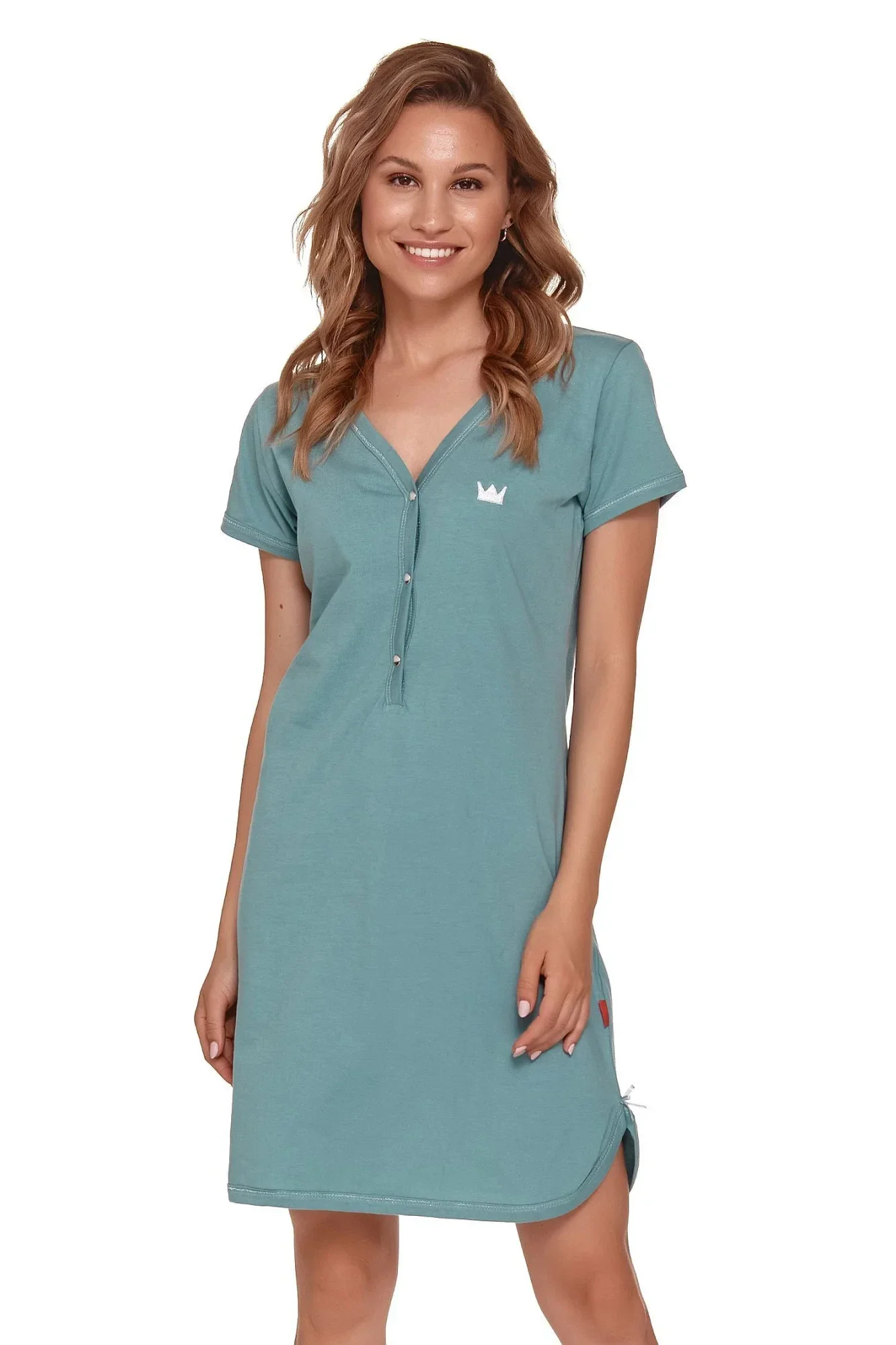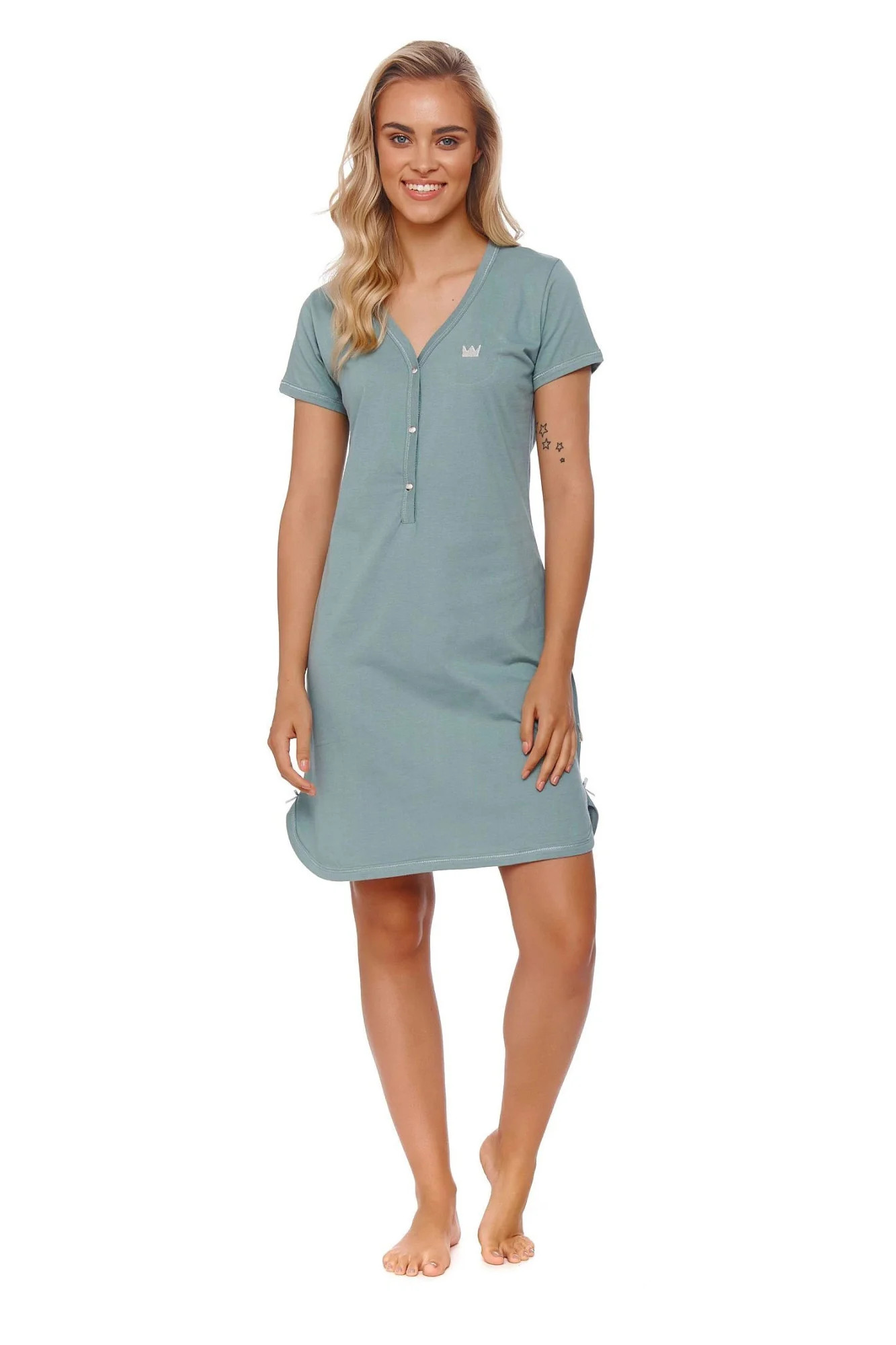 Dámská noční košile 9505 Doctor Nap - vyrobené z velmi kvalitní a příjemné bavlny - mátová barva s krátkými rukávy - zapínání na druky - ideální pro těhotné a kojící - hypoalergenní