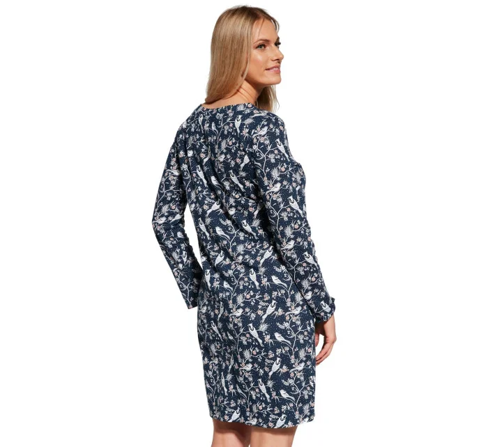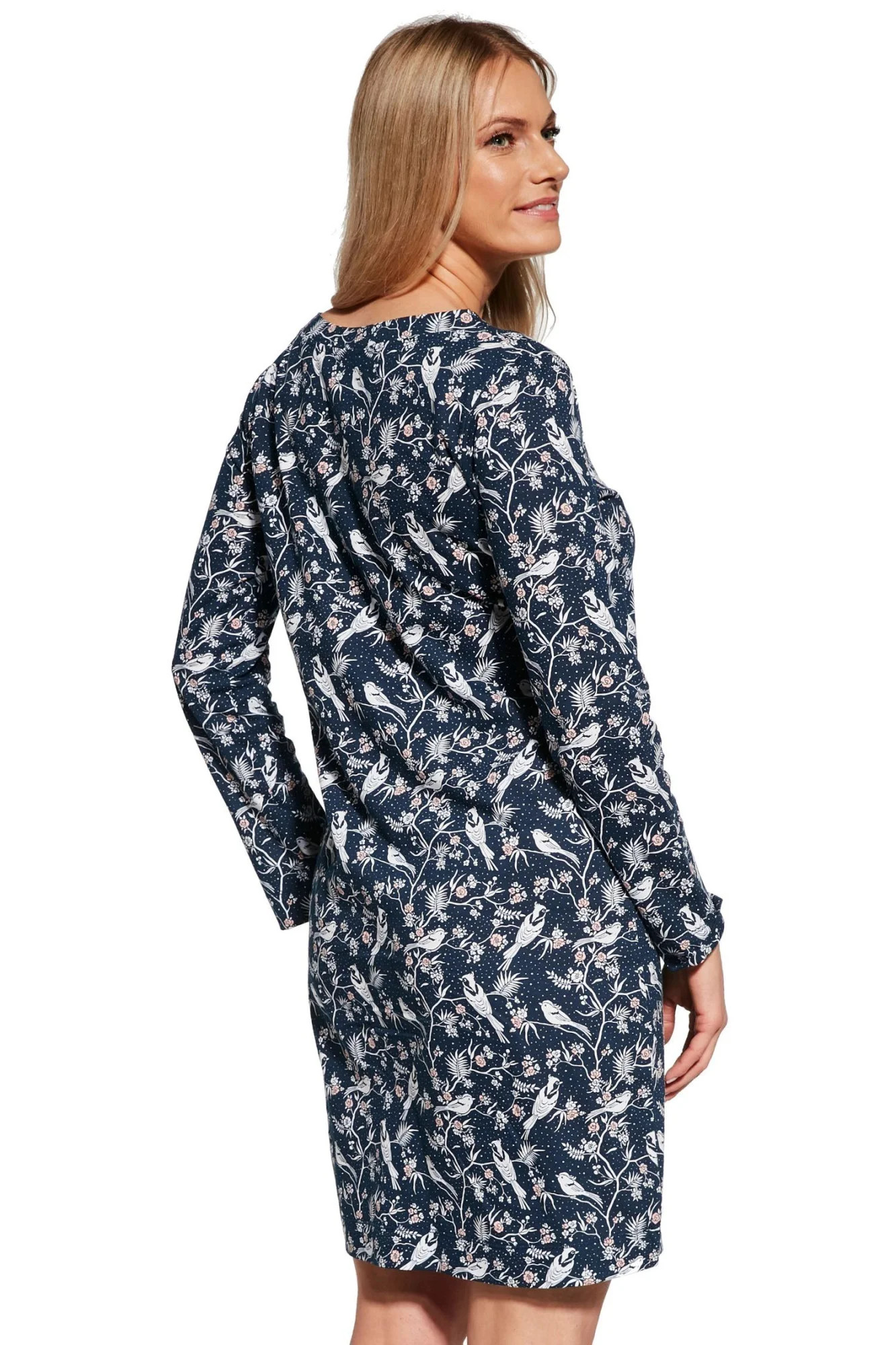 Dámská bavlněná noční košile od značky Cornette. Noční košile má dlouhé rukávy a je volného střihu. Celoplošně má jemný potisk. Je ze 100% bavlny, proto je velmi příjemná a pohodlná.