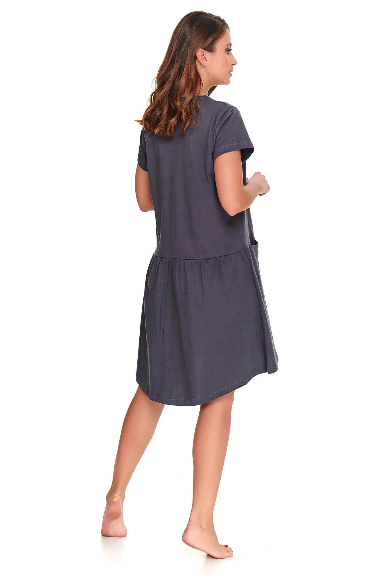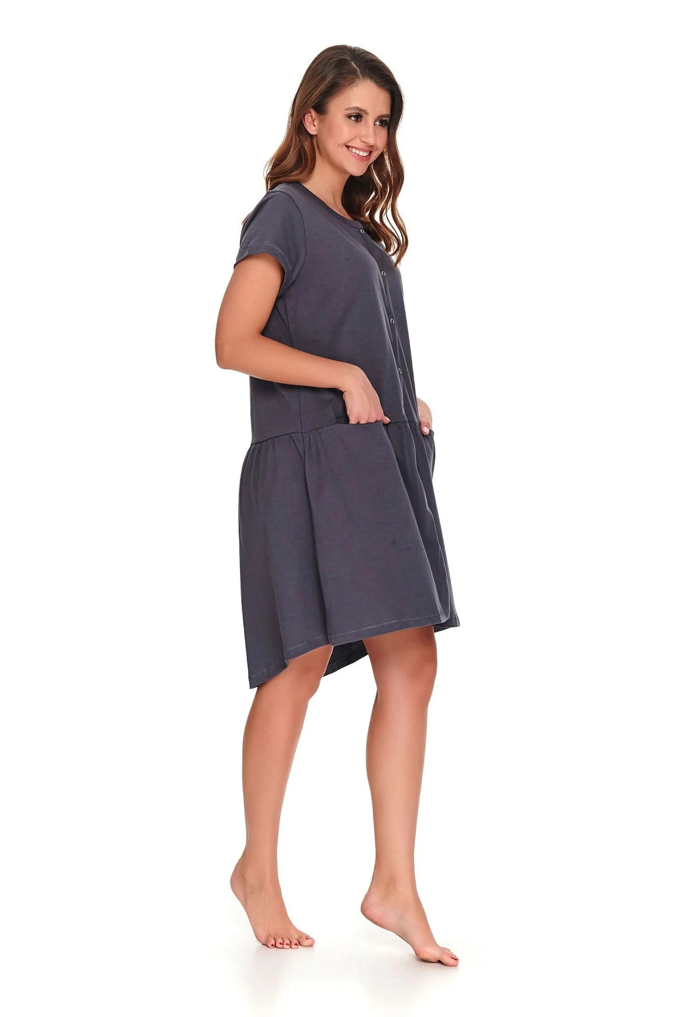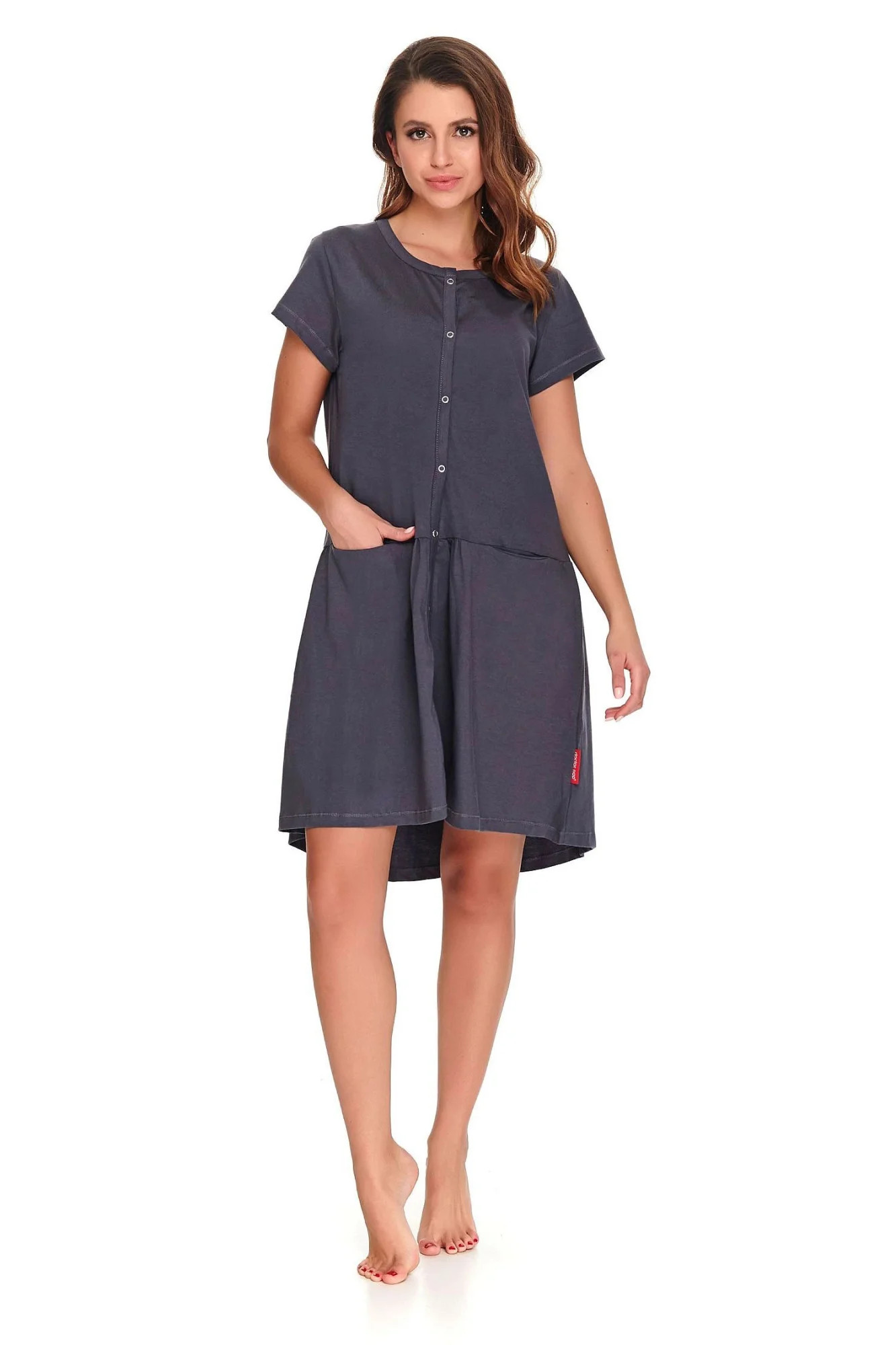 Noční košile 9445 graphite Doctornap - grafitová barva - vyrobená z velmi kvalitního a příjemného materiálu - s krátkými rukávy - zapínání na patentky - s kapsami - ideální pro těhotné a kojící ženy