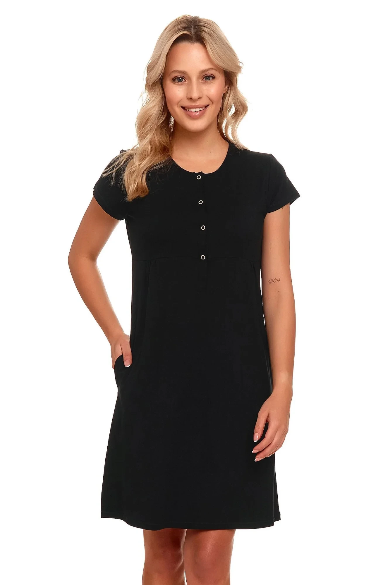 Noční košile 9941 black Doctornap - černá barva - vyrobená z velmi kvalitního a příjemného materiálu - s tříčtvrtečními rukávy - zdobená bílými puntíky - zapínání na patentky - ideální pro těhotné a kojící ženy - certifikát OEKO-TEX Standard 100