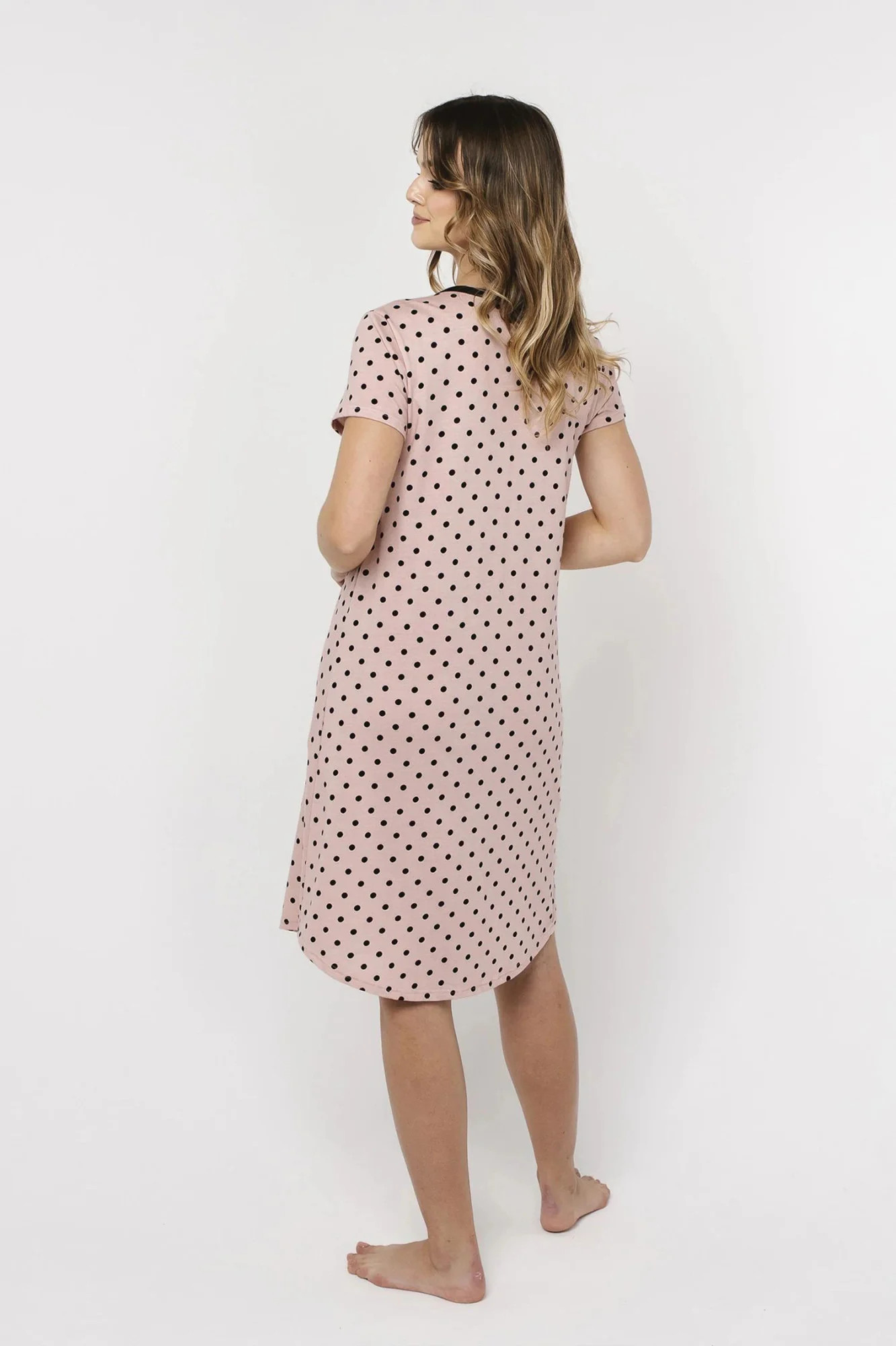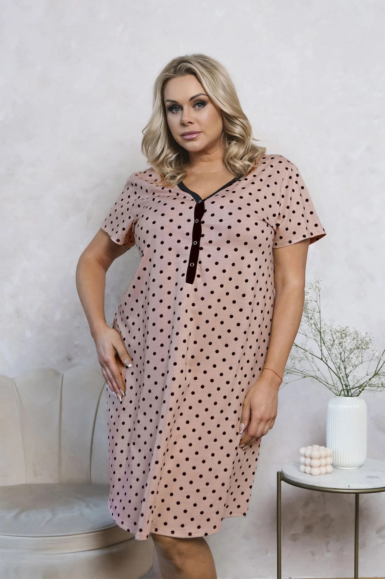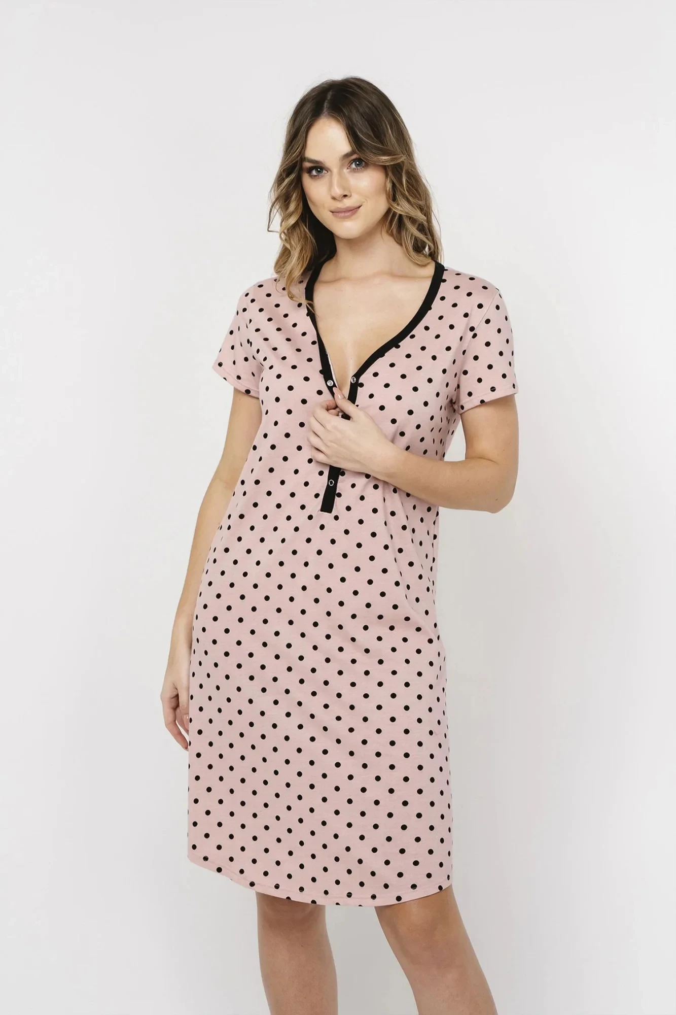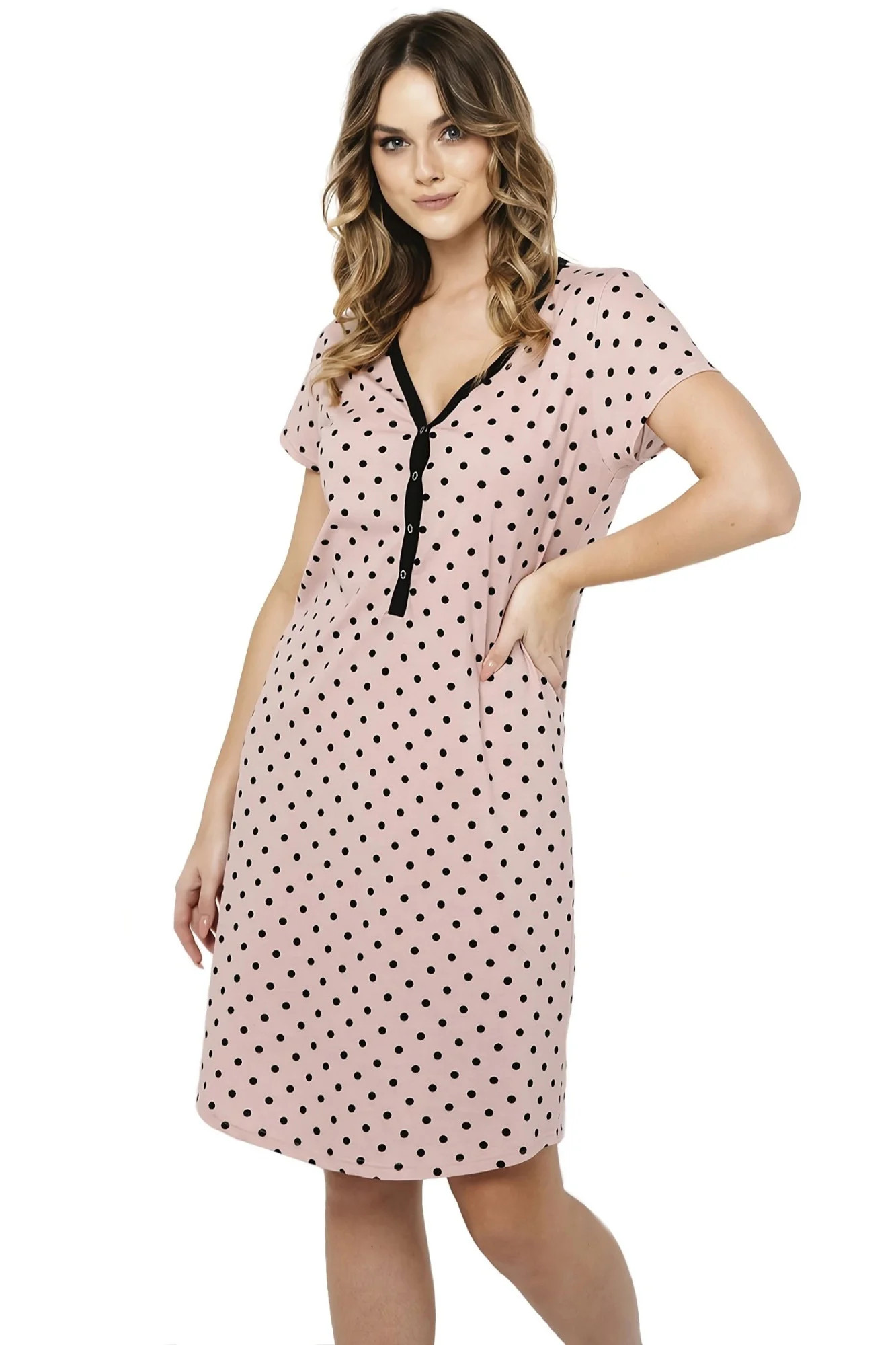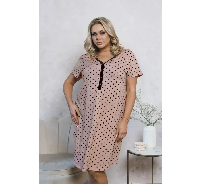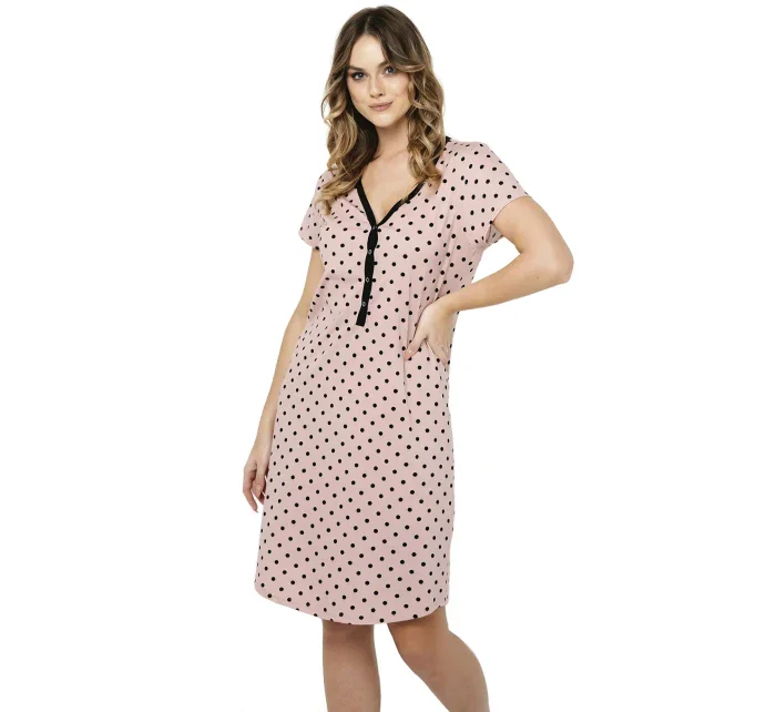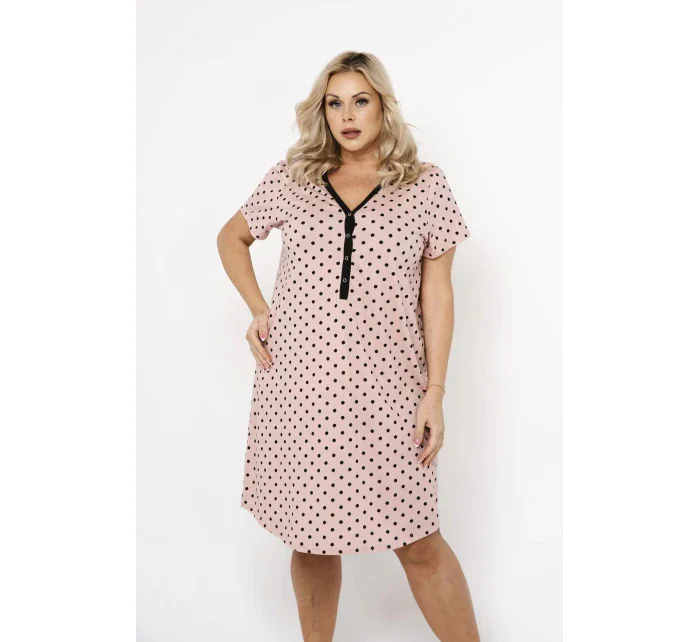 Noční košile Buscato plus ITALIAN FASHION - růžová barva - vyrobená z velmi kvalitní a příjemné bavlny - krátký rukáv - zapínání na patentky - s černými puntíkyMateriálové složení: 100% bavlna