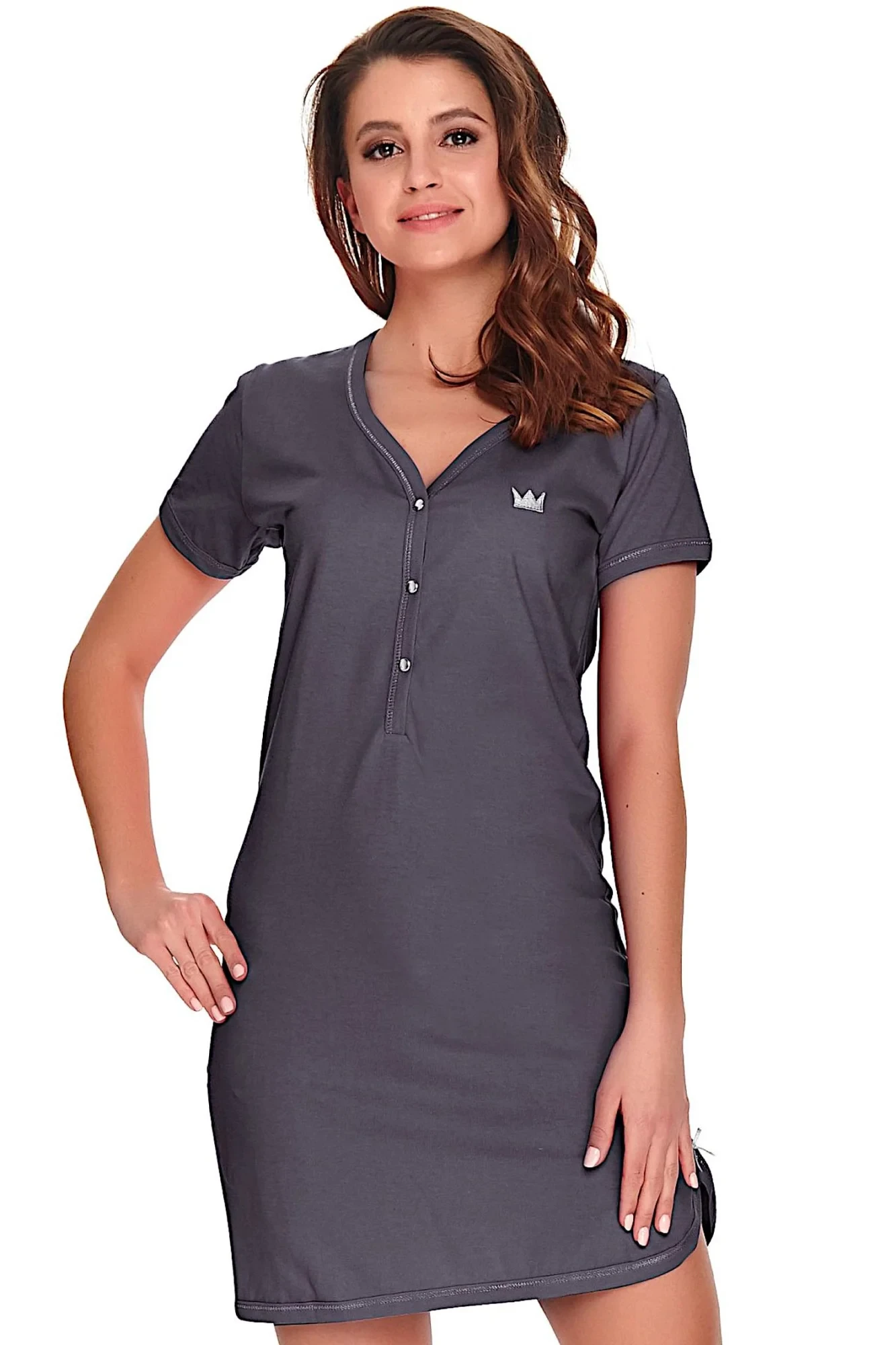 Dámská noční košile 9505 Doctor Nap - vyrobené z velmi kvalitní a příjemné bavlny - grafitová barva s krátkými rukávy - zapínání na druky - ideální pro těhotné a kojící - hypoalergenní