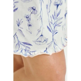 Noční košile Caroline 3455 značky Taro je dokonalou kombinací pohodlí a ženského půvabu. Je vyrobena ze 100% kvalitní bavlny, poskytuje příjemný pocit na pokožce a vynikající prodyšnost. Model je v délce ke kolenům, má jemný výstřih do V a decentní volánky na rukávech a ve spodní části, které dodávají lehkost a romantiku. Košile je nejen pohodlná, ale také velmi ženská – ideální pro všechna roční období.