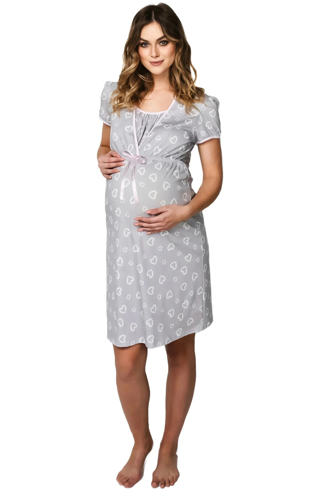 Dámská těhotenská košile Noelia ITALIAN FASHION - šedá barva - vyrobená z velmi kvalitní a příjemné bavlny - krátký rukáv - ozdobená bílými srdíčky - ideální pro těhotné a kojící ženy