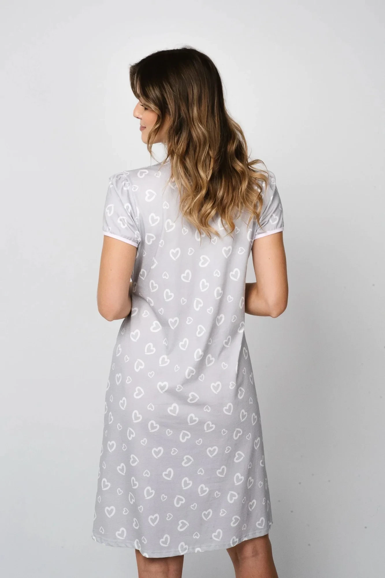 Dámská těhotenská košile Noelia ITALIAN FASHION - šedá barva - vyrobená z velmi kvalitní a příjemné bavlny - krátký rukáv - ozdobená bílými srdíčky - ideální pro těhotné a kojící ženyMateriálové složení: 100% bavlna