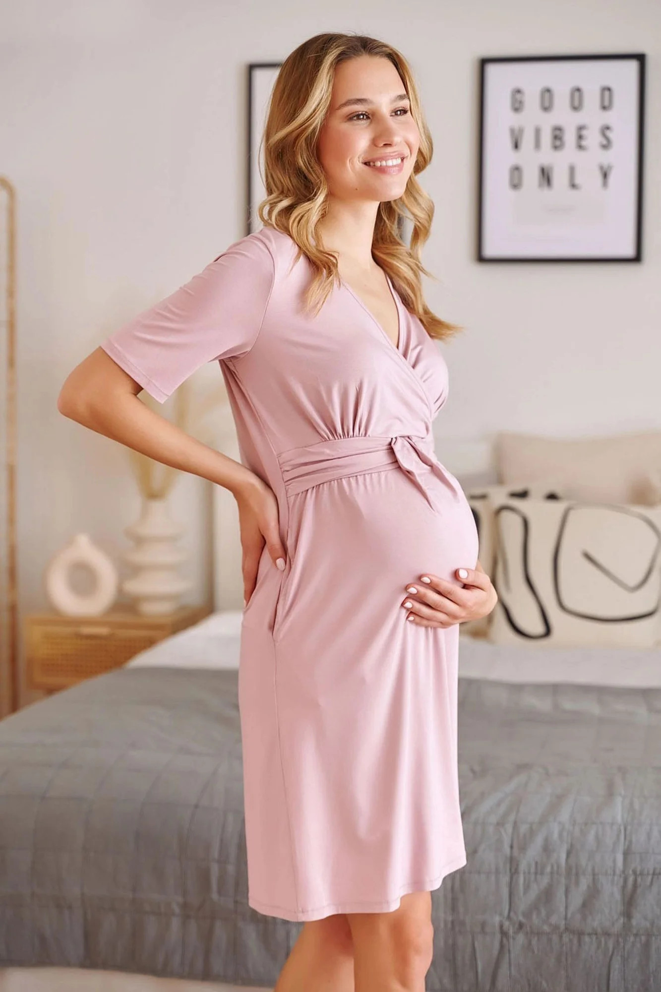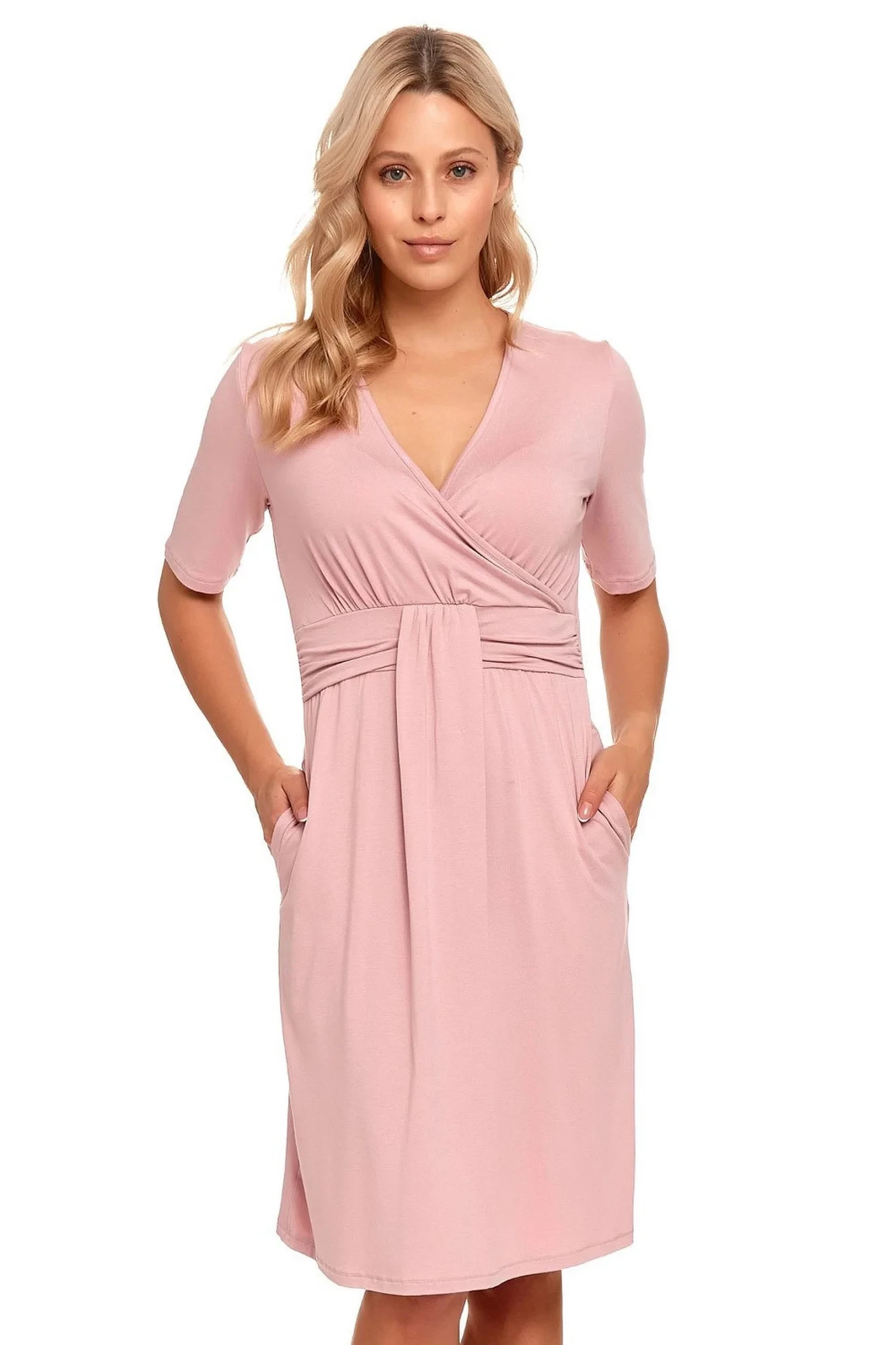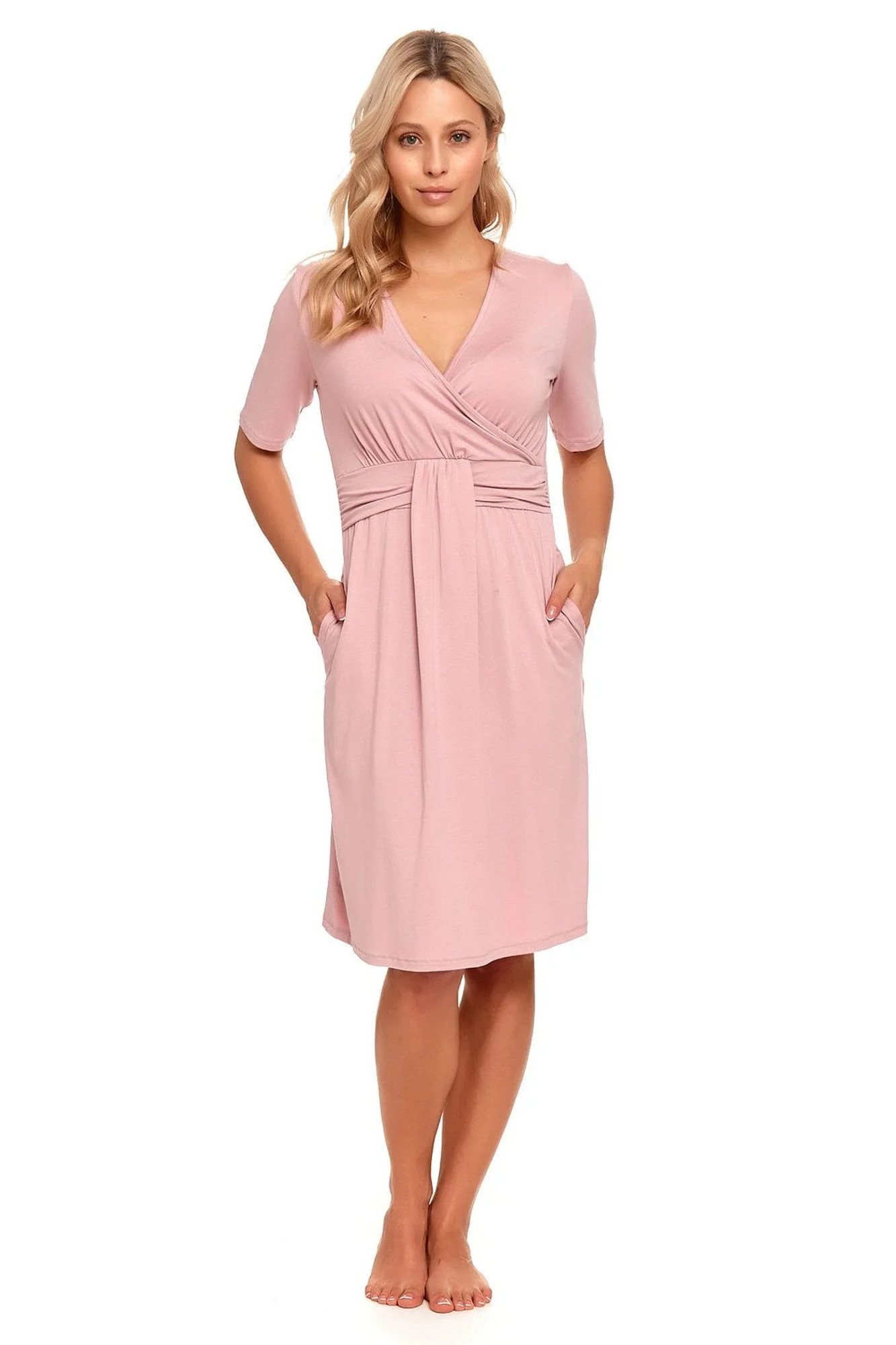 Dámská noční košile 9116 Doctor Nap - vyrobené z velmi kvalitní a příjemné látky - růžová barva s krátkými rukávy - překřížený dekolt - na bocích kapsy - ideální pro těhotné a kojící ženy
