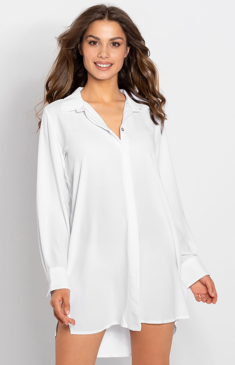 Noční košile s dlouhými rukávy a zapínáním na knoflíky. Košile volného střihu z měkké tkaniny příjemné na dotek. Polský výrobek.