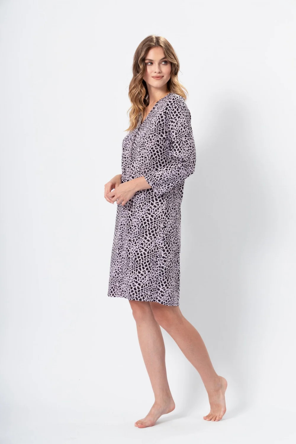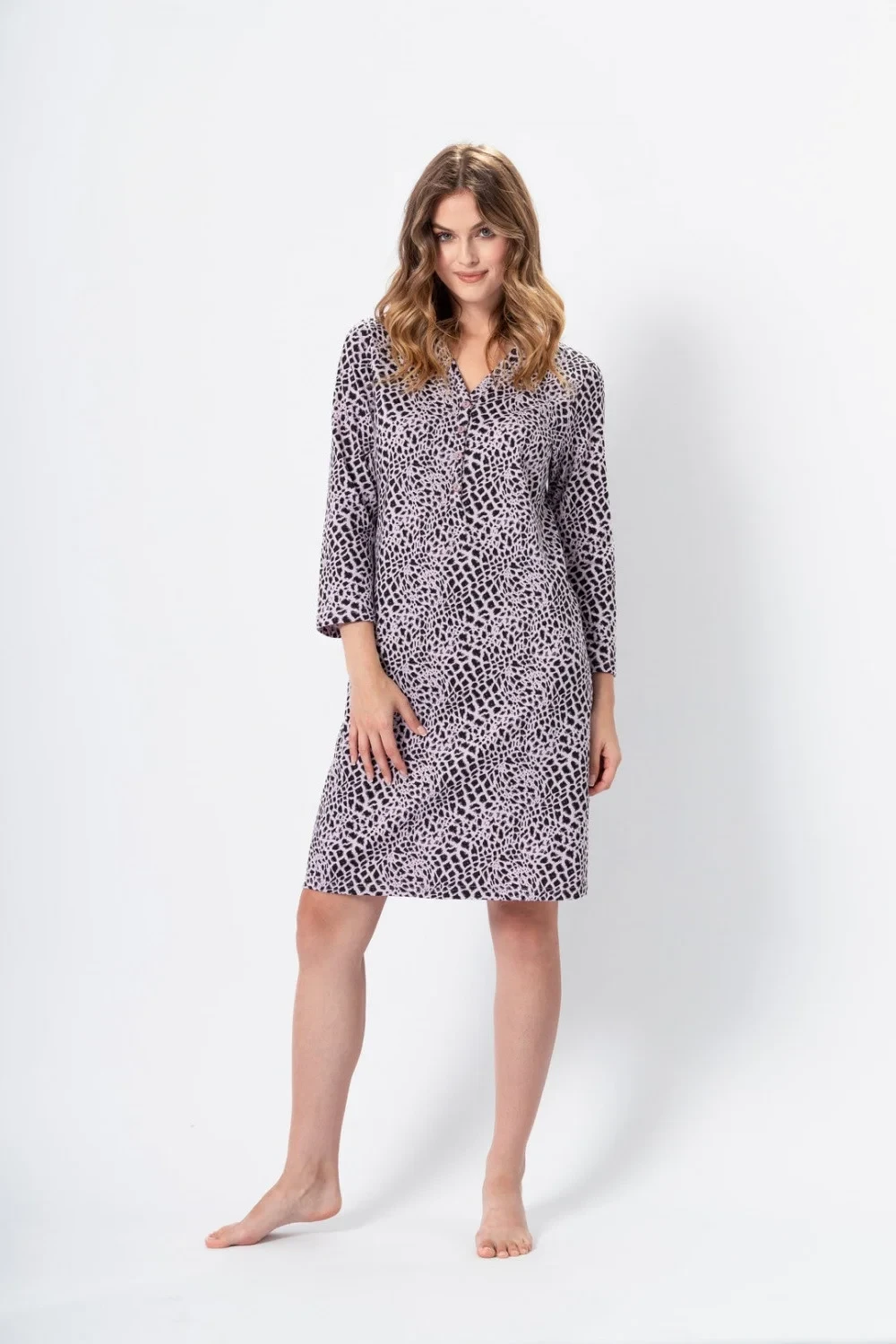 Tady je! Návrh vytvořený pro milovníky zvířecích potisků! Jedinečný, jemný a osobitý. Dámská košile Ewa je zárukou toho, co slibuje maximální pohodlí během spánku! Je vyrobena ze 100% bavlny zachované v barvách jemné lilie a kontrastní černé uspořádané do leopardího vzoru, takže opravdu potěší. Má pohodlné 7/8 rukávy a výstřih s jemným véčkem. Délka ke kolenům. Vše dohromady vypadá opravdu okouzlujícím způsobem... zdánlivě jednoduché, ale jaký to má efekt! To musíte mít!