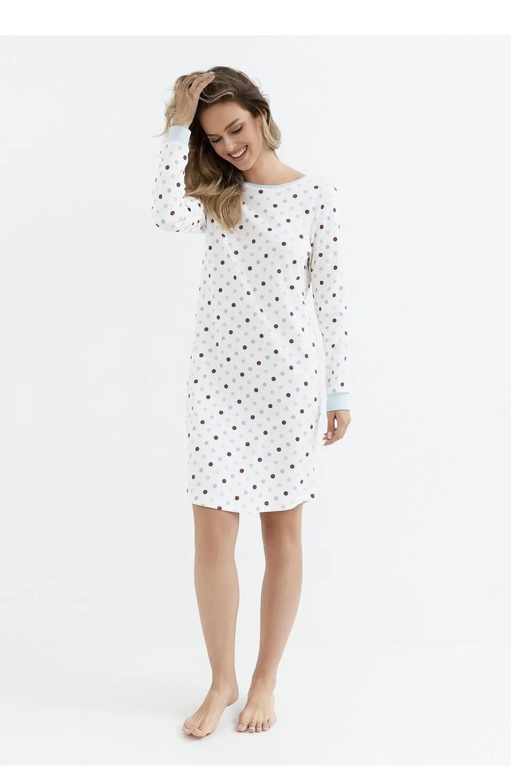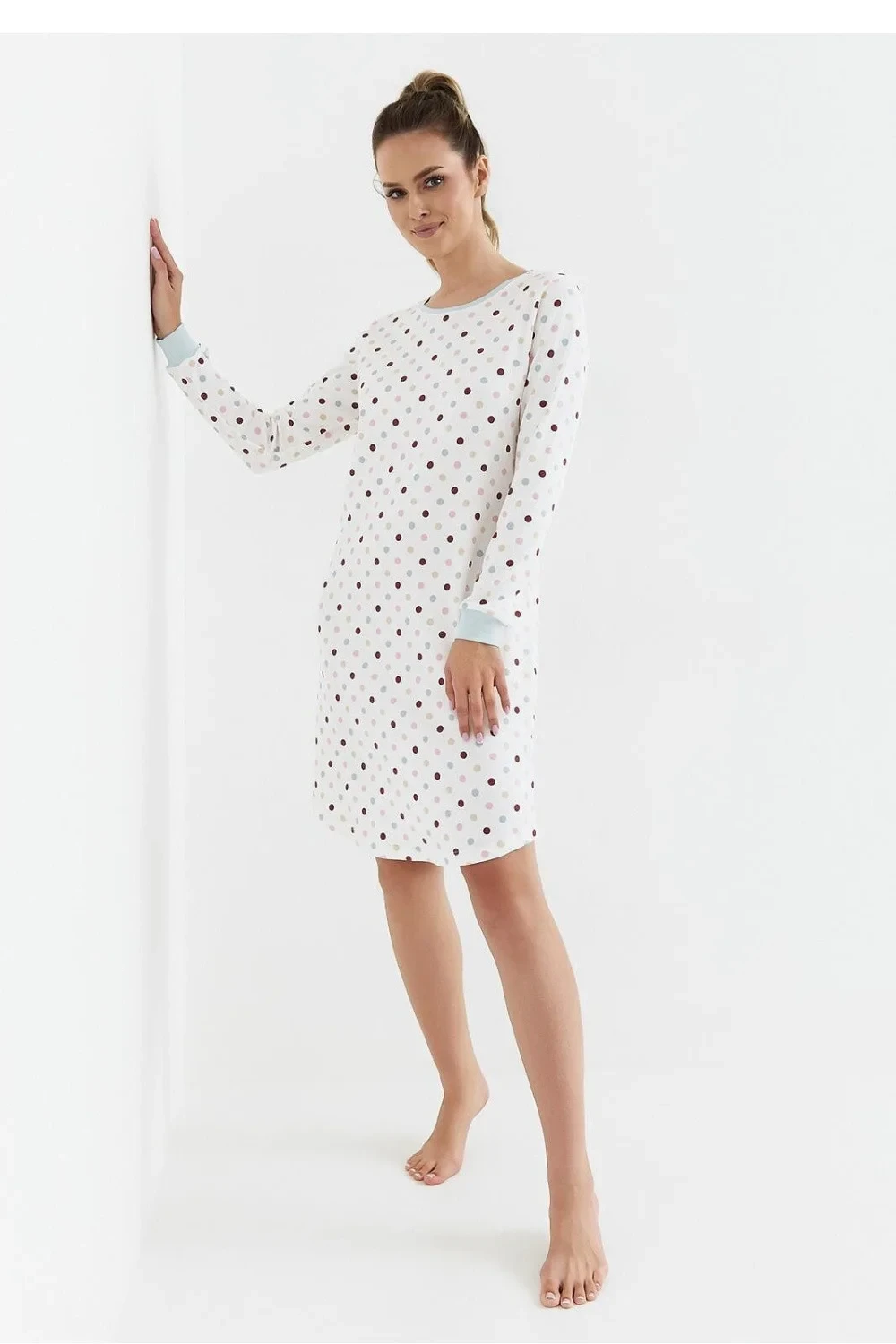 Dámská noční košile z interlockové bavlny je pohodlný a stylový návrh pro klidný spánek. Vyrobená z měkkého a prodyšného materiálu s potiskem, zaručuje pohodlí a svěžest po celou noc. Polokruhový výstřih a volný, pohodlný střih zajišťují volnost pohybu, zatímco délka nad kolena dodává celku jemný půvab. Dlouhé rukávy s elastickým lemem dodávají košili moderní charakter a zároveň poskytují další pohodlí. Košile je zabalená v praktickém fóliovém sáčku, což ji činí skvělým dárkem.