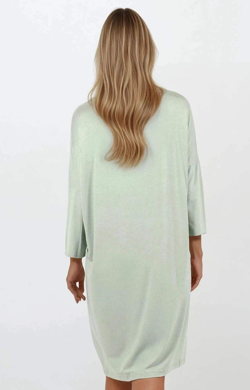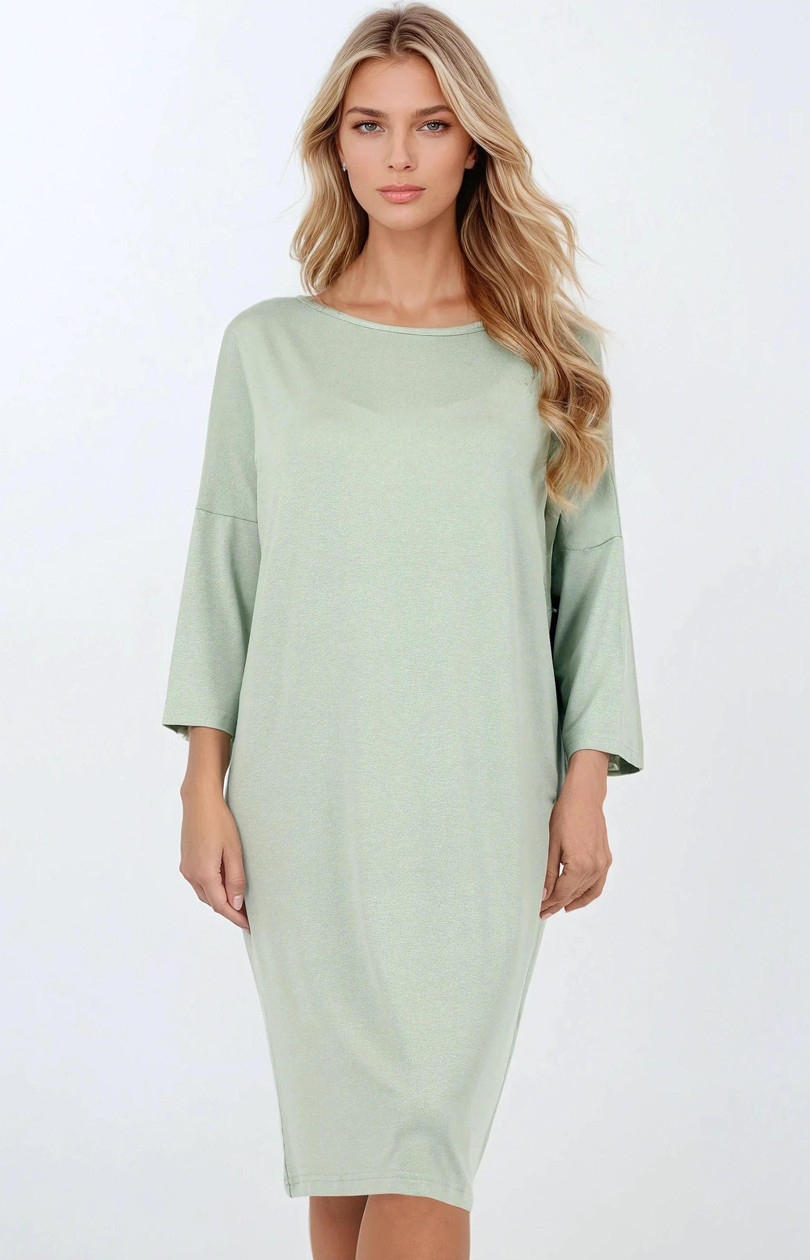 Klasická noční košile typu basic, navržená s maximálním pohodlím a jemnou ženskostí. Vyrobena z jemné viskózy příjemné k pokožce, vyniká volným, elegantním střihem, který se pohodlně přizpůsobuje postavě. Délka po kolena a 3/4 rukávů dělají z této košile ideální volbu na každou roční dobu. Kulatý výstřih a decentní barevnost zdůrazňují minimalistický, ale elegantní charakter prádla. Košile byla navržena a ušita v Polsku s důrazem na vysokou kvalitu provedení, ideální na každodenní nošení a jako univerzální kousek nočního šatníku.