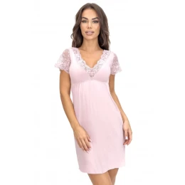 Elegantní a mimořádně pohodlná noční košile, vytvořená s ohledem na pohodlí a ženský styl. Model bez vyztužení v košíčcích zajišťuje přirozené přizpůsobení a plnou volnost pohybu. Výstřih ve tvaru písmene V, decentně zakončený jemnou krajkou, krásně zdůrazňuje linii krku a dekoltu. Gumička pod prsy jemně zvýrazňuje siluetu, aniž by tlačila, a volný střih zaručuje maximální pohodlí během spánku. Krajkové rukávy dodávají celku lehkost a romantický charakter. Spod košile zakončený mašlí vypadá velmi esteticky, a délka před kolena činí model jak praktický, tak ženský. Košile je vyrobena z měkké a prodyšné látky, ideální na každou roční dobu, skvělá volba pro ženy, které oceňují pohodlí a eleganci ve svém domácím prostředí.