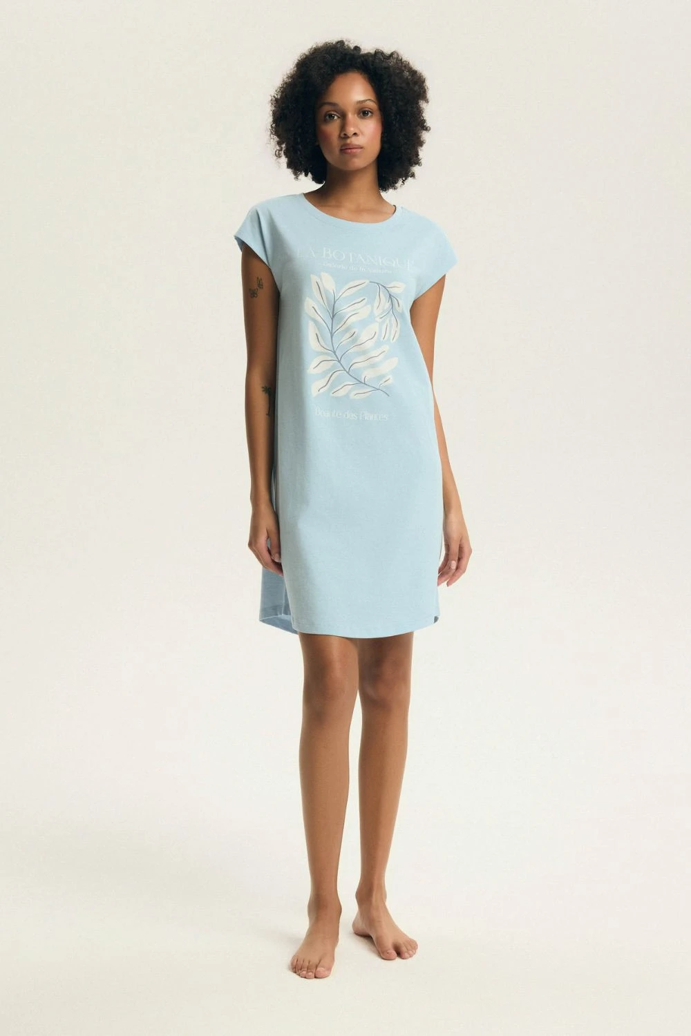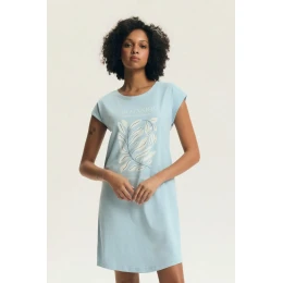 Pohodlná a stylová noční košile je skvělou volbou pro pohodlný spánek a relaxaci v domácím prostředí. Model s polokruhovým výstřihem a krátkým rukávem poskytuje volnost pohybu a nadčasový vzhled. Košile je zdobena decentním potiskem, který jí dodává jemný charakter, zatímco neutrální barevnost zdůrazňuje elegantní a univerzální styl. Volný a pohodlný střih zajišťuje, že se model dobře přizpůsobí postavě a neomezuje pohyb během spánku. Výrobek je balen v praktickém fóliovém sáčku, takže se skvěle hodí také jako dárek.