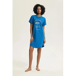 Pohodlná dámská noční košile navržená s ohledem na pohodlí během spánku a domácího odpočinku. Model má klasický, kulatý výstřih a krátký rukáv, díky čemuž poskytuje volnost pohybu a lehkost nošení. Košile se vyznačuje volným, pohodlným střihem, který neomezuje pohyb a skvěle se hodí k odpočinku. V přední části je módní potisk, který dodává celku ženský a ležérní charakter. Délka po kolena a polokruhový spodek zajišťují, že model vypadá lehce a velmi pohodlně. Noční košile je balena v praktickém fóliovém sáčku, co usnadňuje skladování a přepravu.