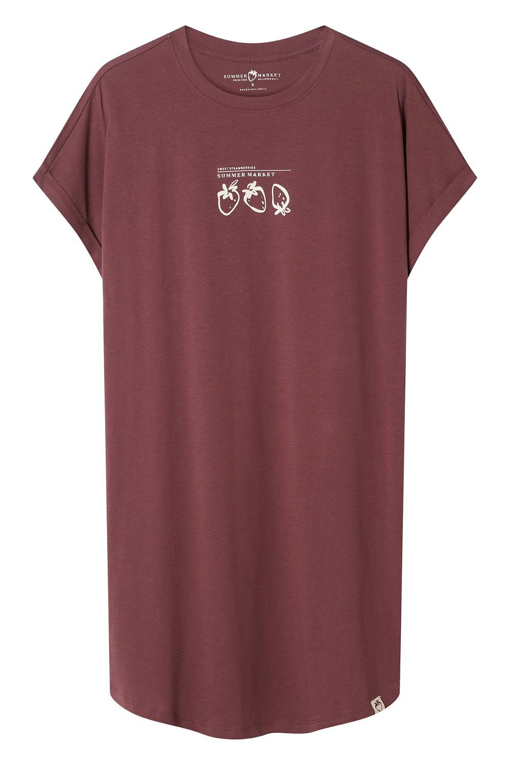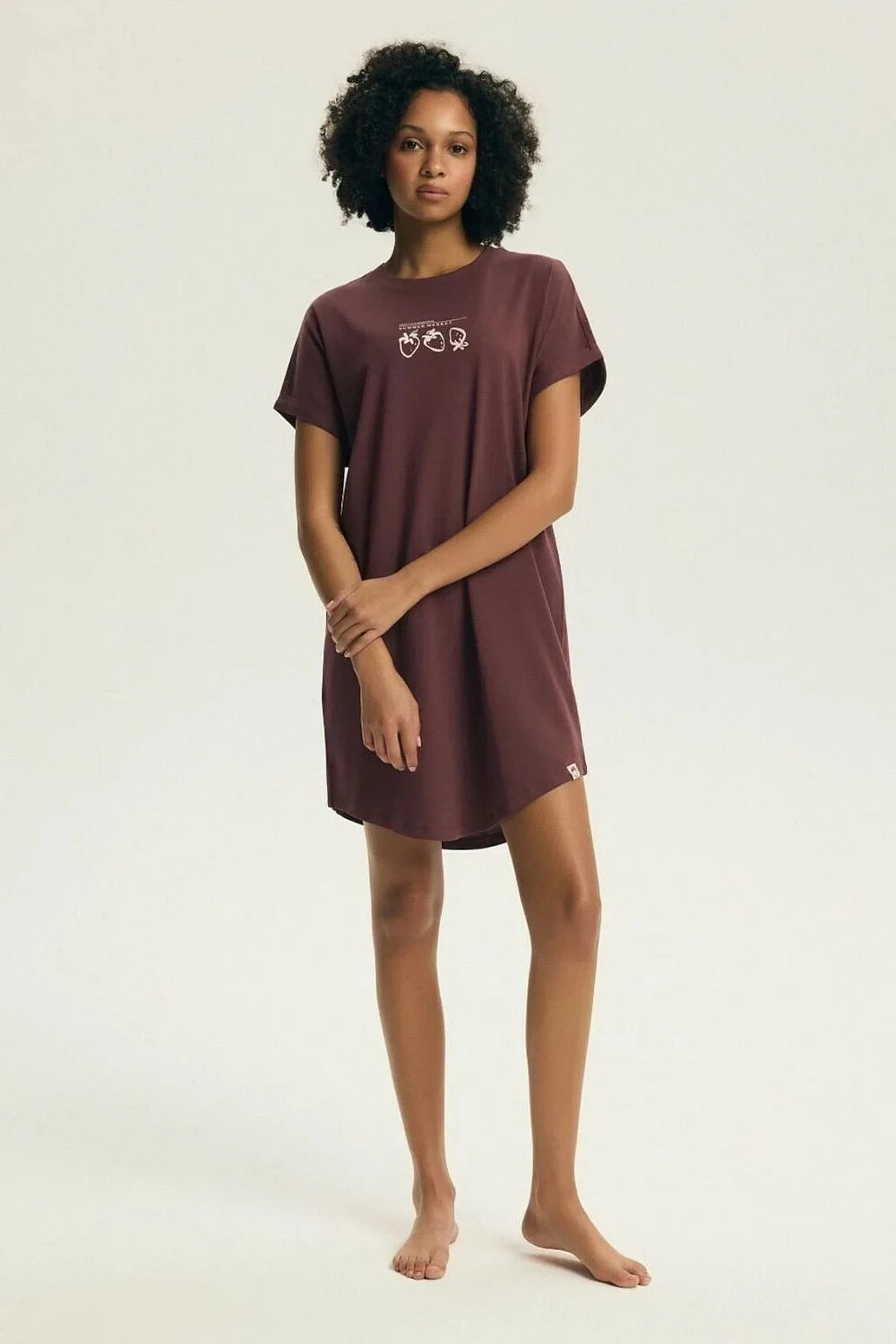 Pohodlná a ženská noční košilka ideální pro klidný spánek a relaxační chvíle v domácím útulku. Model s krátkým rukávem a klasickým, kulatým, lehce polokulatým výstřihem poskytuje pohodlí nošení a volnost pohybů. Košilka má módní potisk vpředu, který jí dodává jemný, stylový charakter. Volný, pohodlný střih zajišťuje, že se košilka volně přizpůsobuje postavě a neomezuje pohyby. Délka po kolena zaručuje pohodlí a praktičnost při nošení. Celý kus je zabalen v praktickém fóliovém sáčku, který usnadňuje skladování a přepravu.