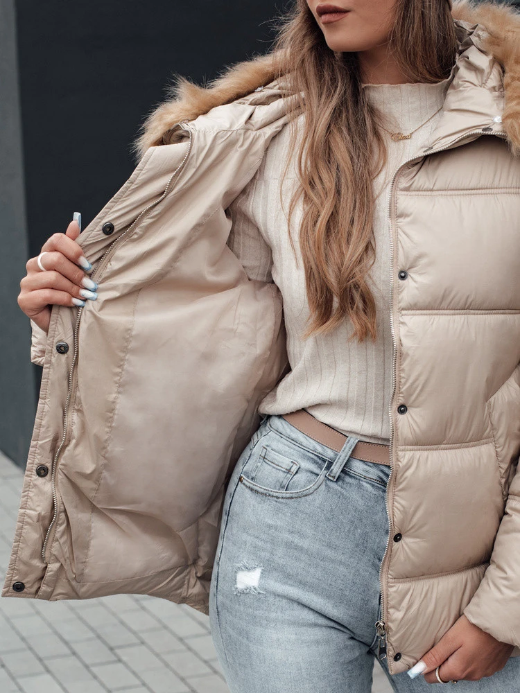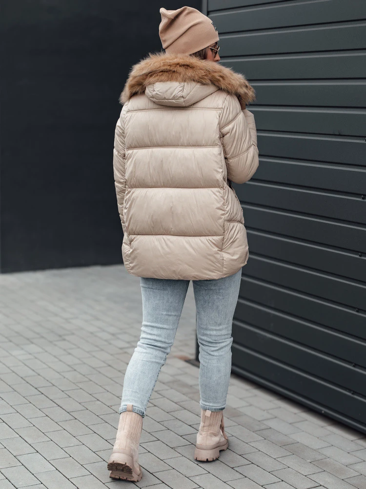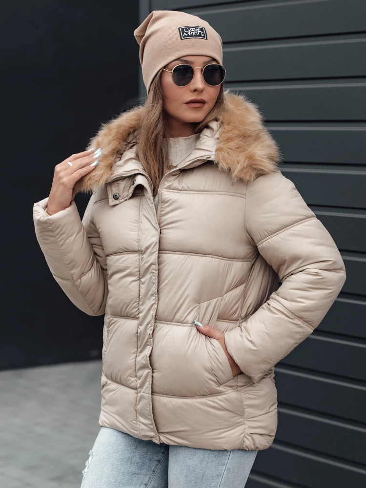 NORDKOLL dámská zimní prošívaná bunda s kapucí světle béžová FashionStreet TY4710