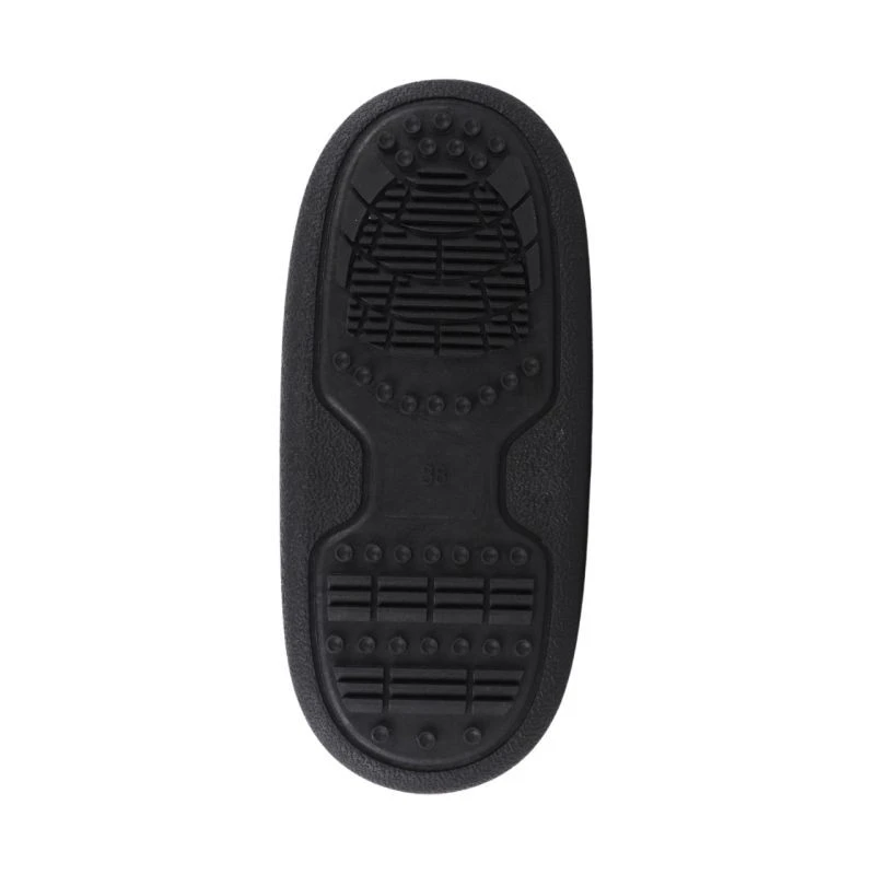 - Wsuwana, średniowysoka konstrukcja. Tekstylne wnętrze z miękkim wyściełaniem. Miękka wkładka. Gumowa podeszwa zewnętrzna z przyczepnym bieżnikiem.