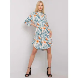 RUE PARIS Světle béžové dámské šaty s potisky.