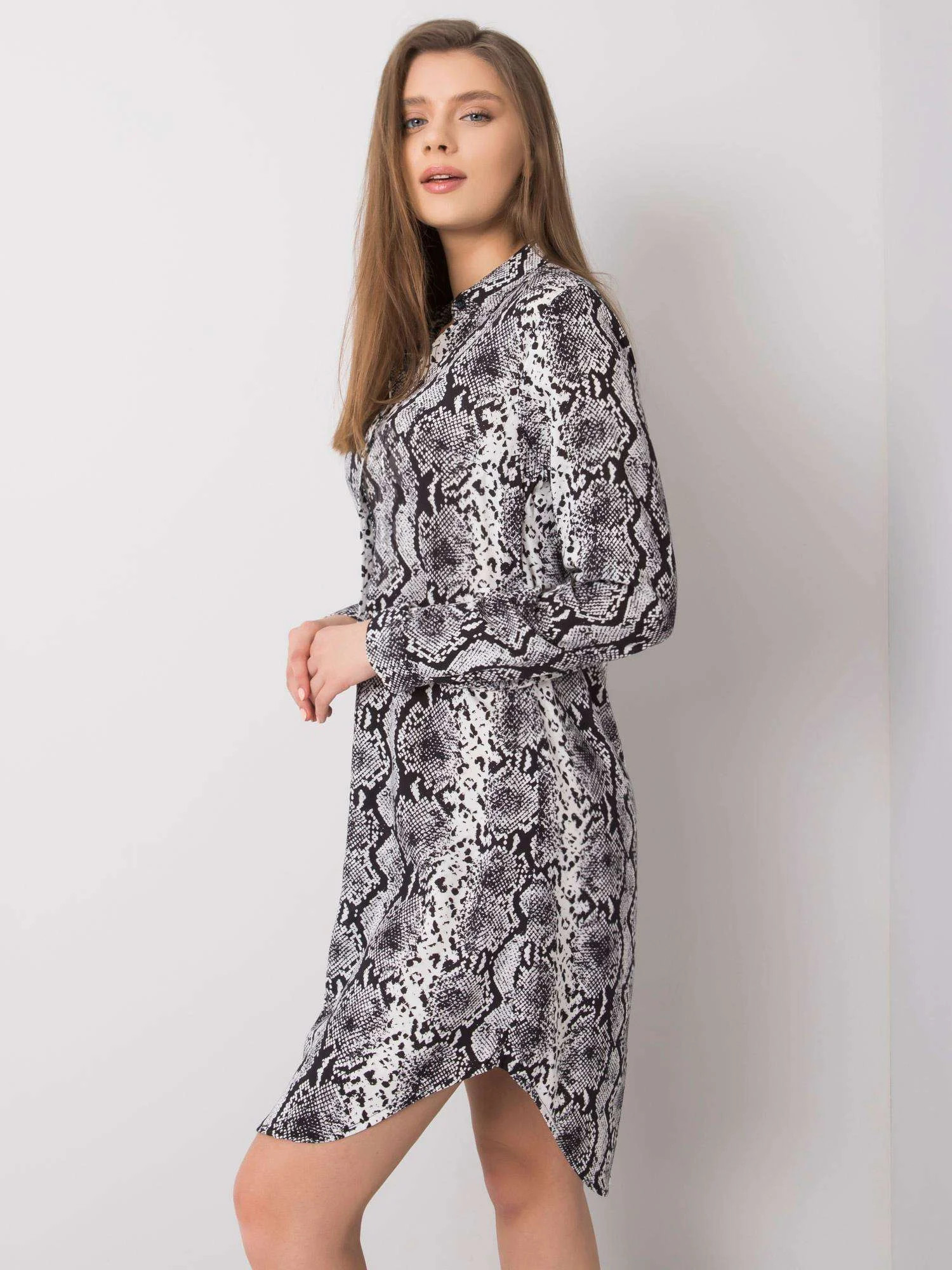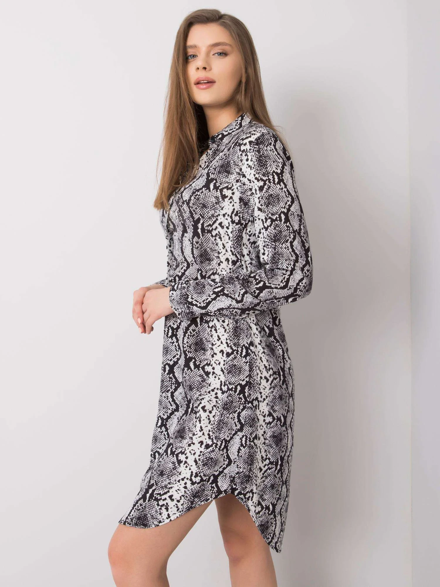Modelka má na sobě velikost S. Rozměry modelky: výška 177 cm, poprsí 90 cm, pas 62 cm, boky 90 cm.