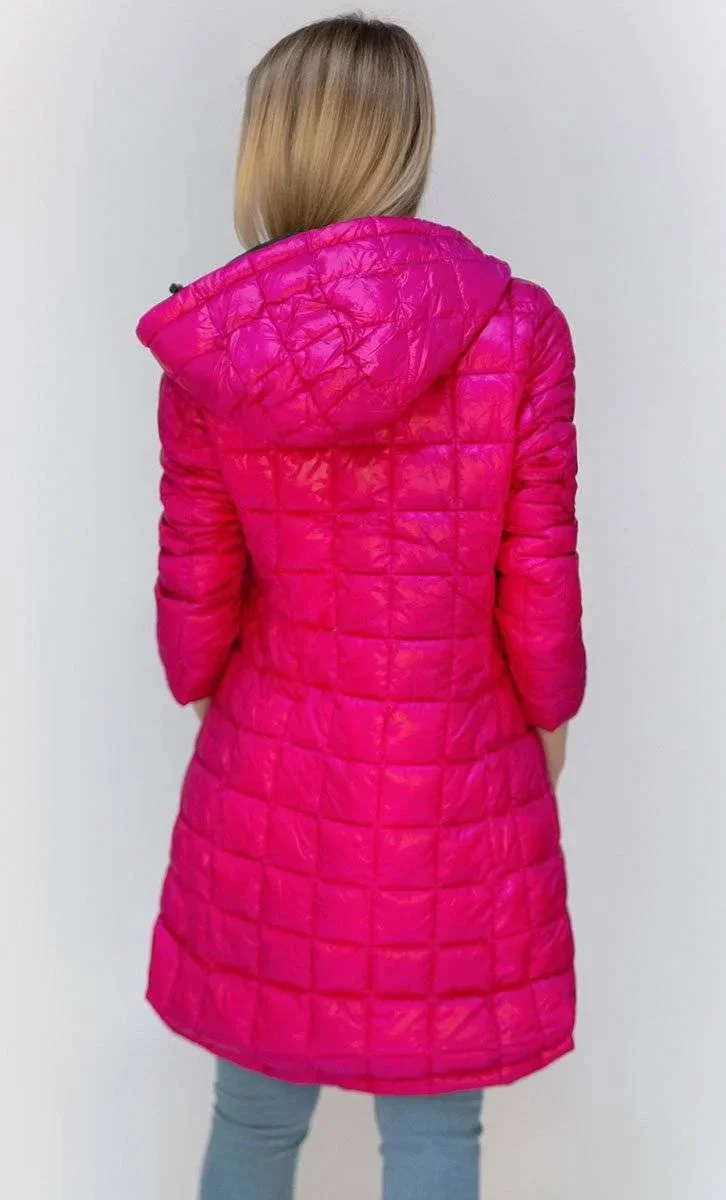 Bunda je zateplená velmi kvalitní syntetickou péřovou výplní. Jedna strana je hladká a druhá prošívaná. Model má stojáček, který přechází do kapuce, kterou není možné odepnout. V kapuci se táhnou stahující šňůrky se stopery. Bunda se zapíná dvojitým oboustranným zipem. Na každé straně bundy jsou dvě kapsy se zapínáním na zip.